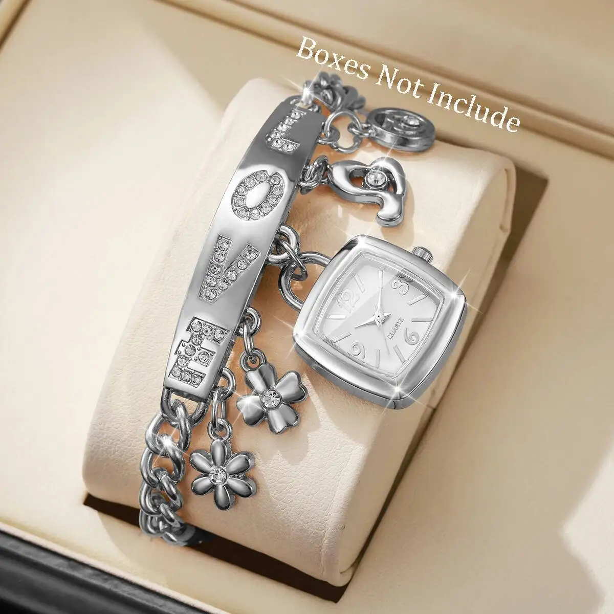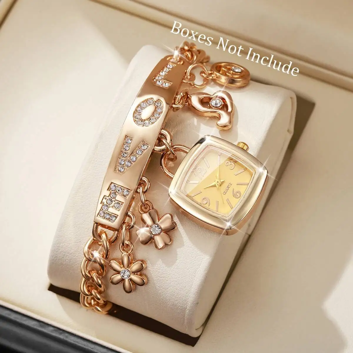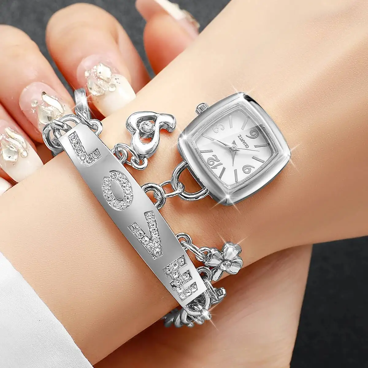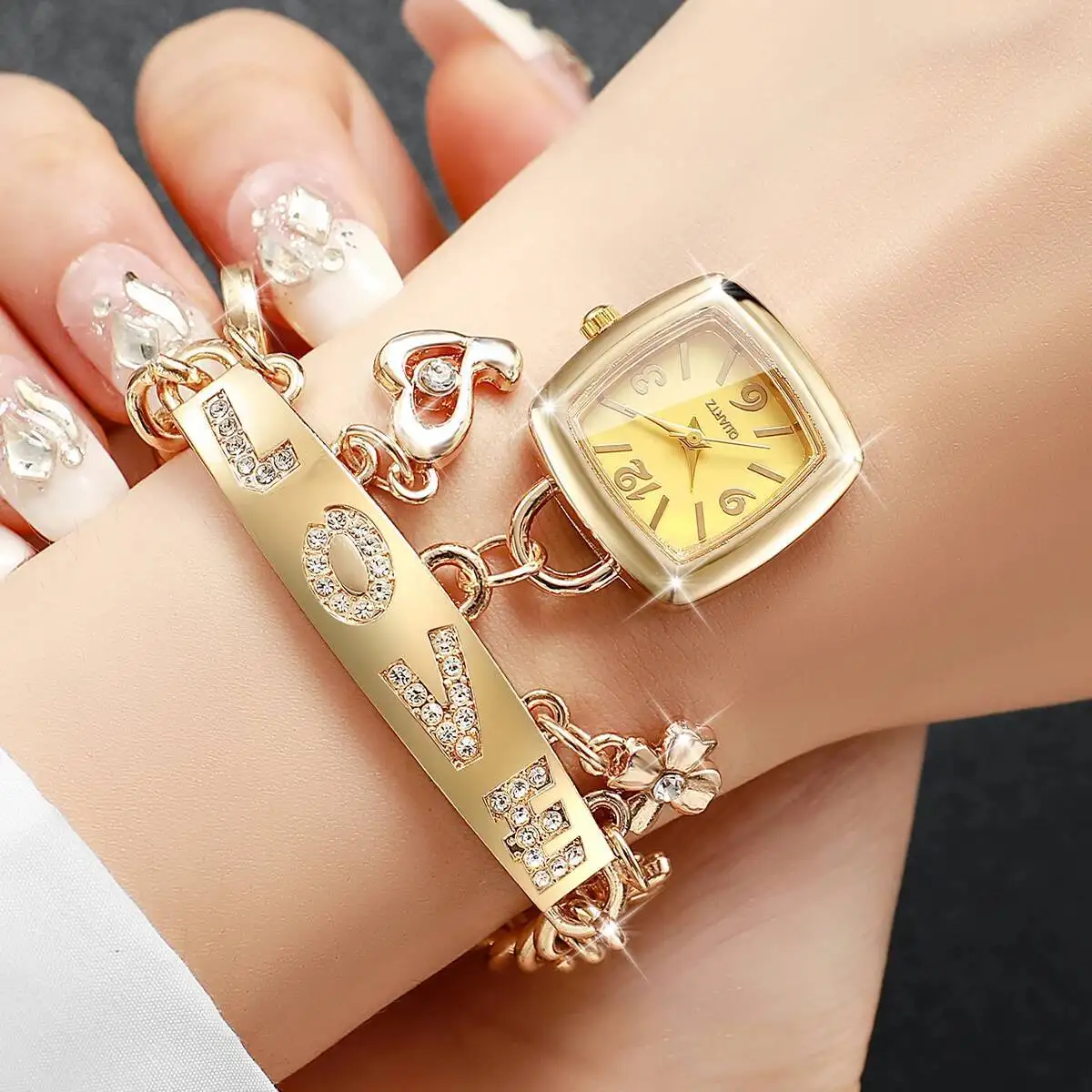 1/2PCS Fashion Bracelet Strap Women Watches Set Ladies Square Arabic Dial Quartz Wristwatches Reloj Mujer(Without Box)