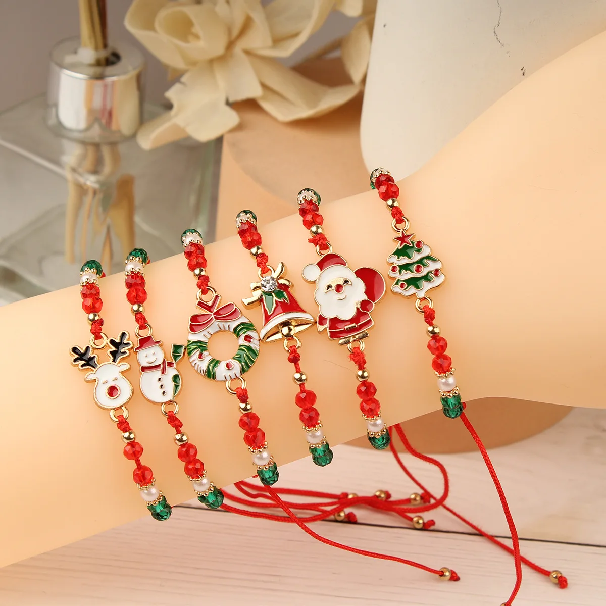 1/6/12pcs Festival Christmas Bracelets Imitation Pearl Santa Claus Xmas Tree Pendant Party Jewelry Gifts for Girls Kids Adult