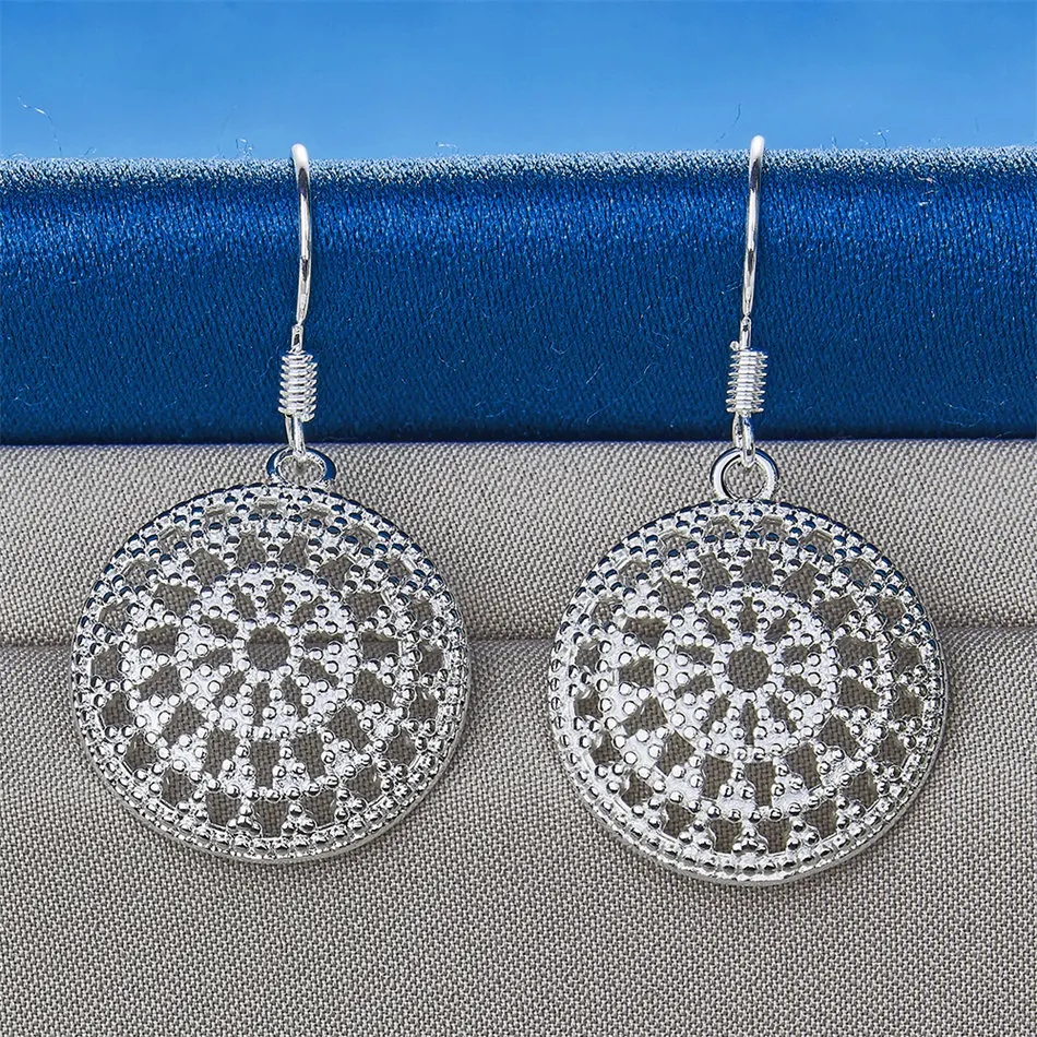 1 pair of 925 sterling silver exquisite round earrings, ladies' fashionable wedding accessories, jewelry