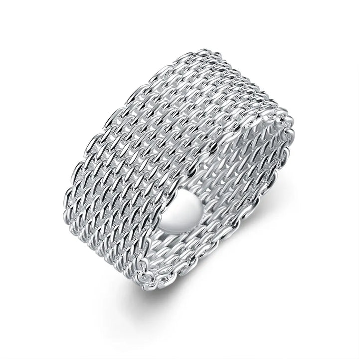 100% 925 Sterling Silver Rings for Women Silver Weaving Wide Ring Personality Fashion OL Woman Girl Party Wedding Gift