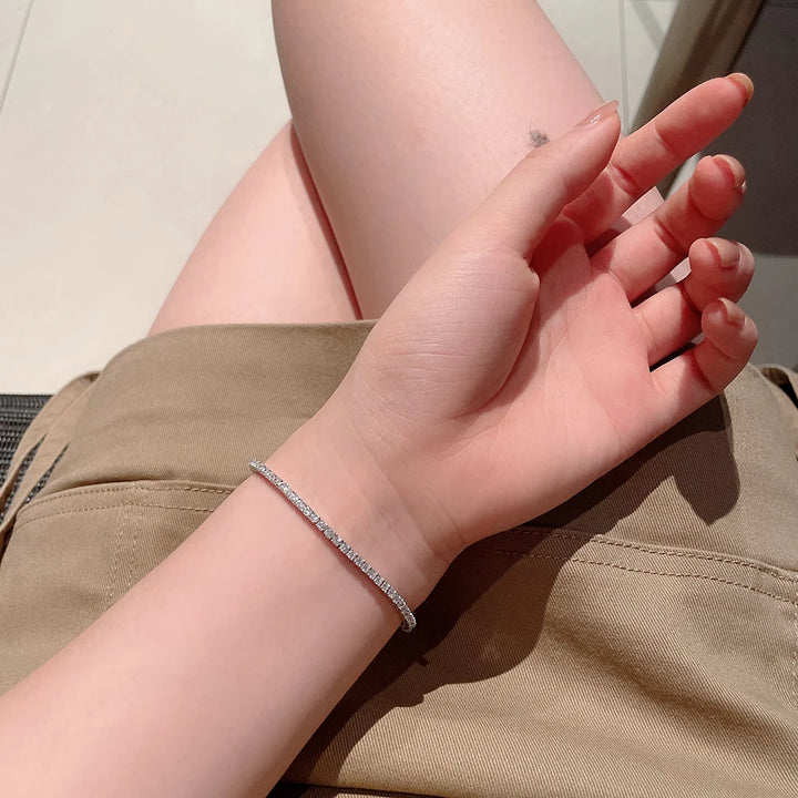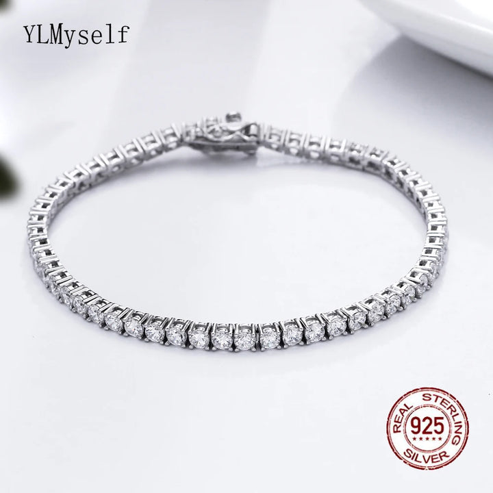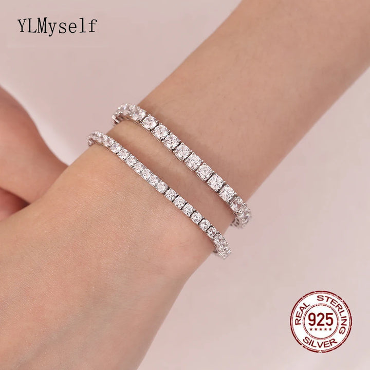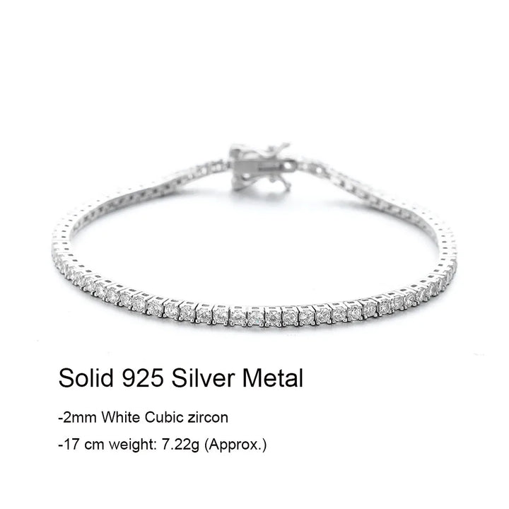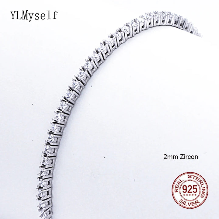 15-22 CM Tennis Bracelet Pure 925 Material Jewelry 2/3/4mm 5A CZ Eternal Gift for Wife Shiny Real Sterling Silver Jewellery