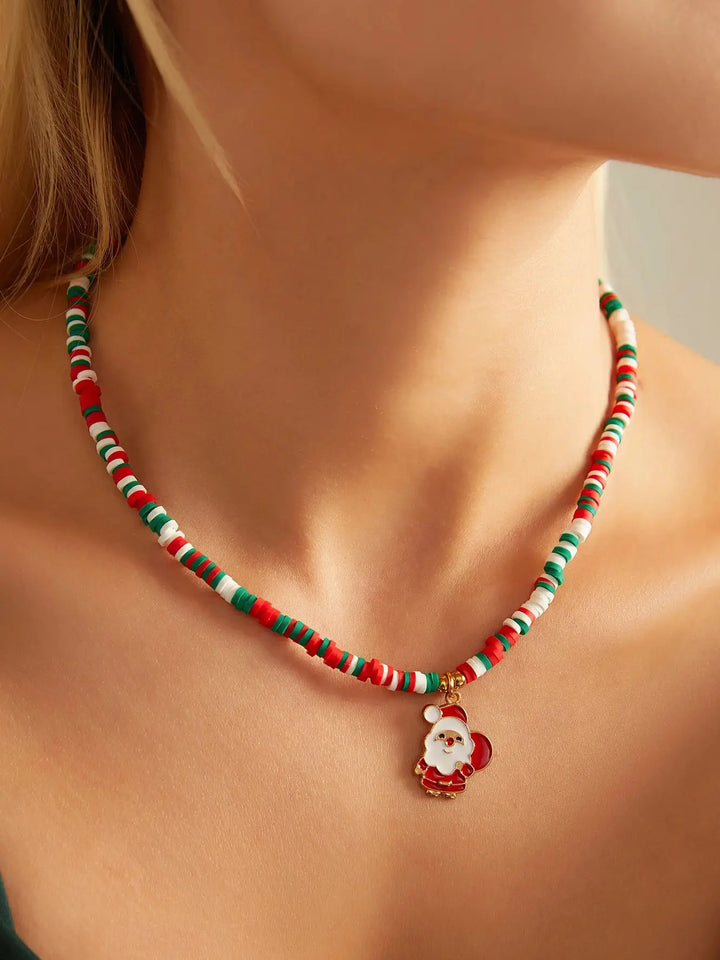 1Pc Women Christmas Necklace, Santa Claus, Snowman, Wreath, Christmas Tree Pendant for Women Daily Wear New 2024 Jewelry Gift
