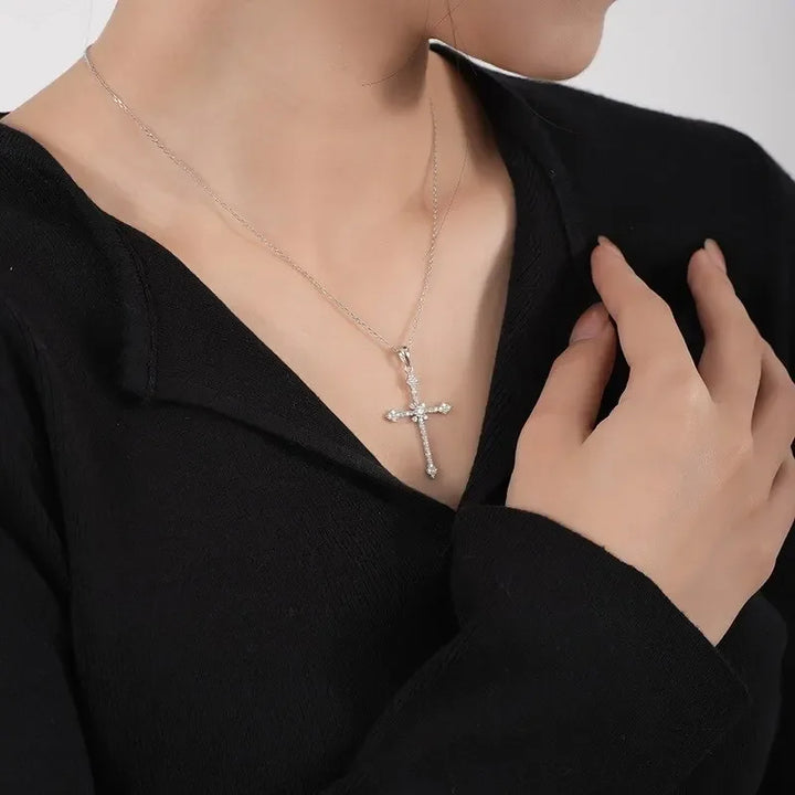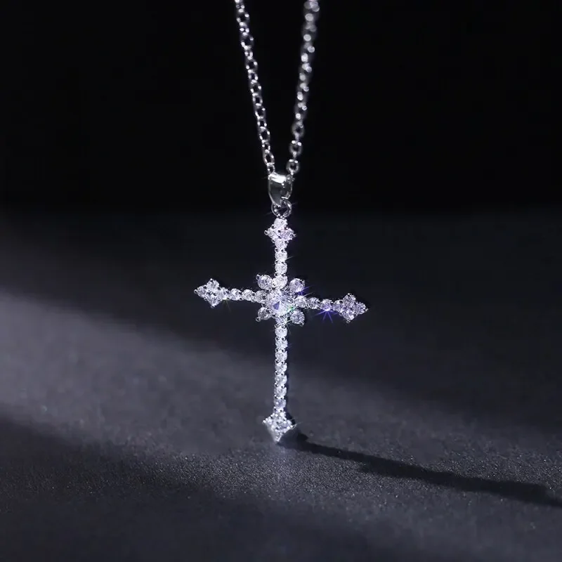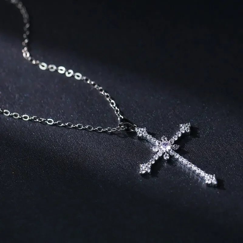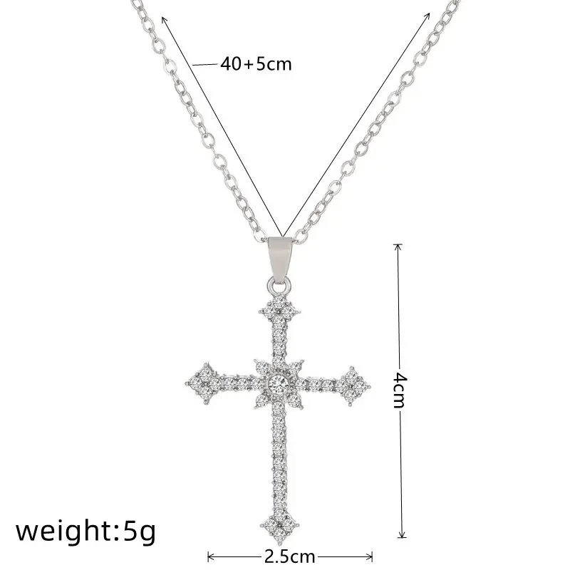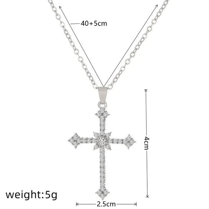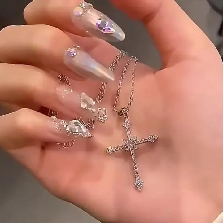1pcs Imitation White Gold-color Necklace Ladies Cold Wind Full Of Diamonds Star Mango Shining Cross Pendant Jewelry