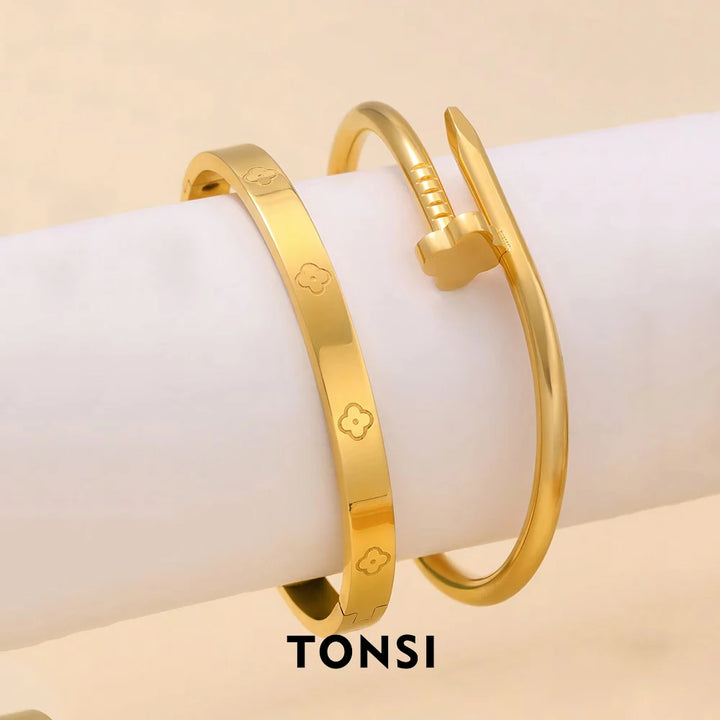 2 Piece Luxury Stainless Steel Clover Bangle and Bracelet Set Women's Versatile Jewellery Gifts Large Quantity In Stock