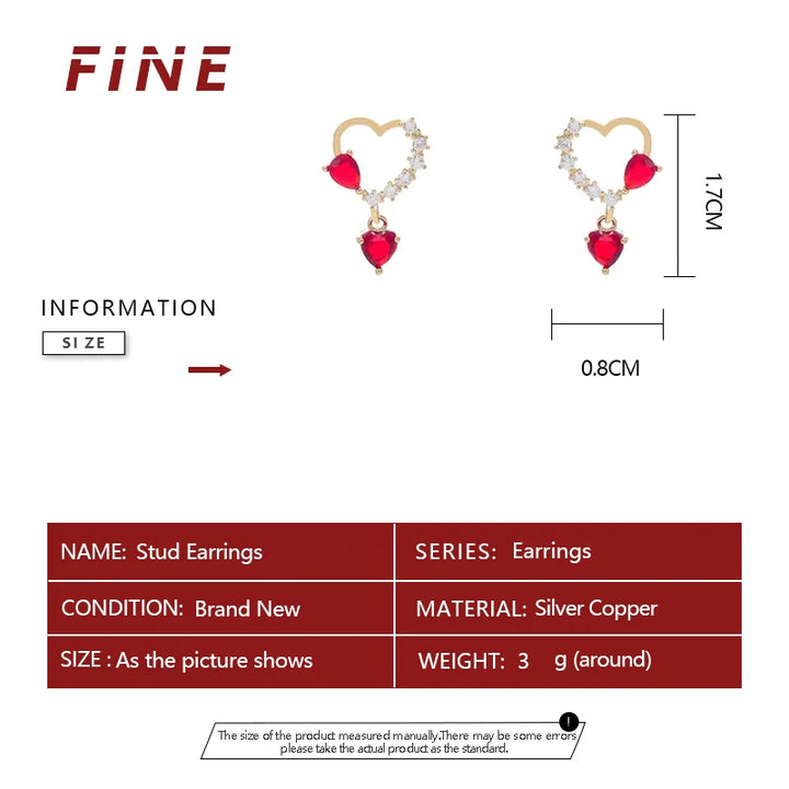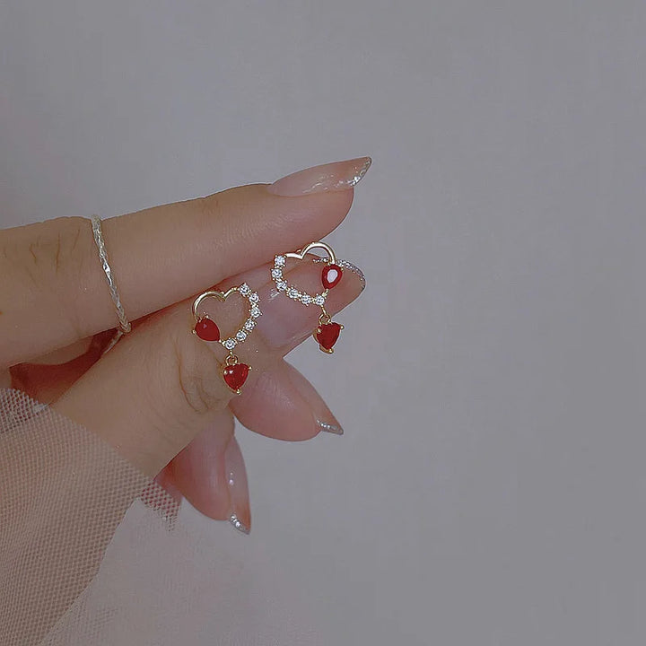 2023 New Fashion Sweet Heart Red Drop Earrings for Women Korean Crystal Long Chain Tassel Earrings Party Wedding Jewelry Brincos