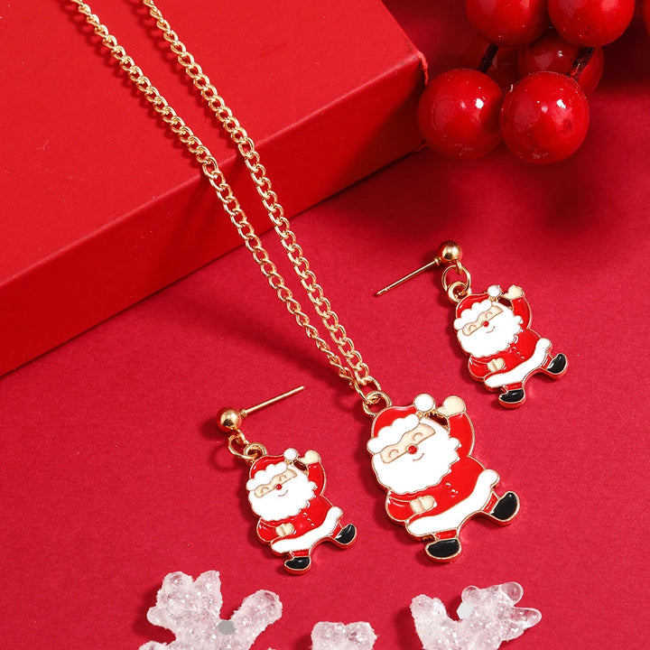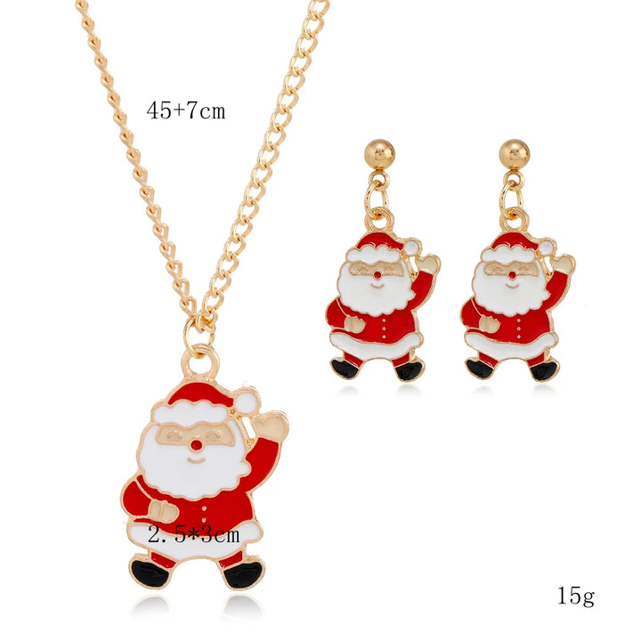 2024 New Trendy Christmas Jewelry Set Cute Alloy Enamel Christmas Gift Santa Claus Elk Necklace Earrings Women Party Accessories