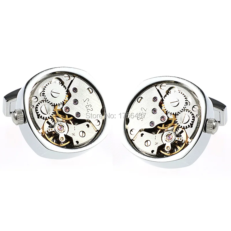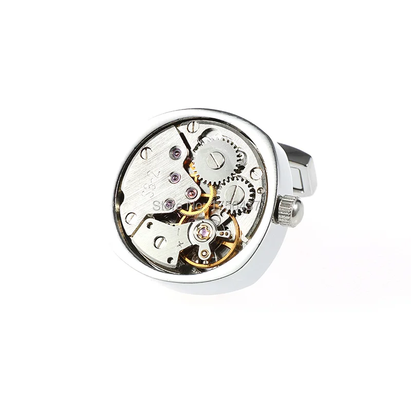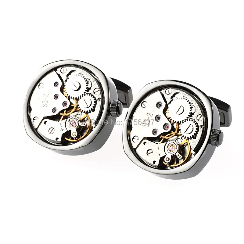Product Name:2016 Hot Sale New Non-Functional Watch Cufflinks Round four corner Movement cuff links for mens wedding Gift french shirt cuffs button