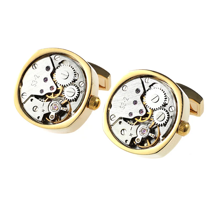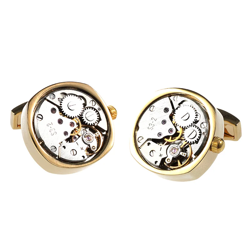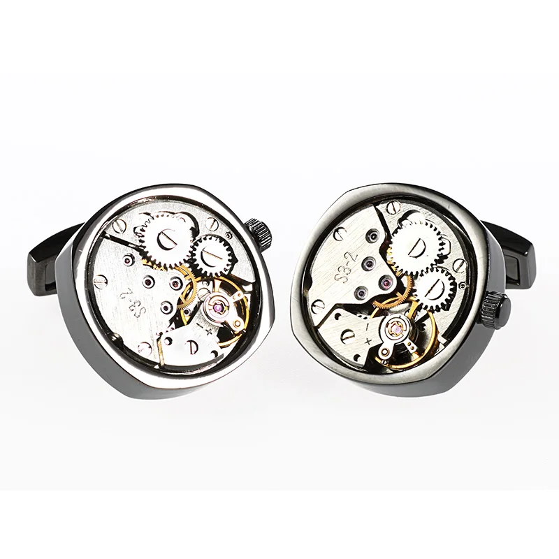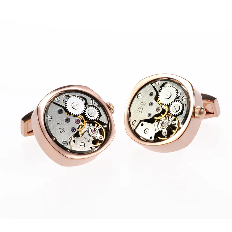 2025 Fashion Hot Sale Non-Functional Watch Movement Cufflinks Round four corner french style cuff links for men wedding gift
