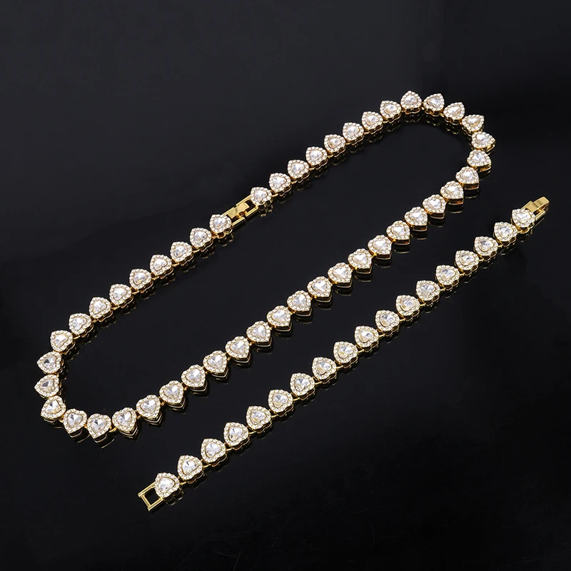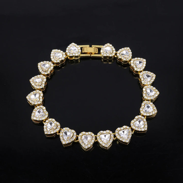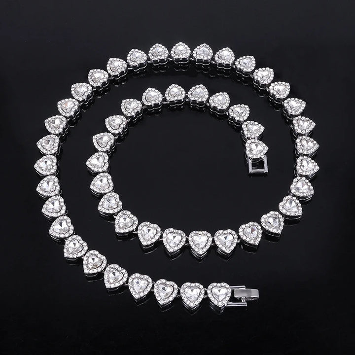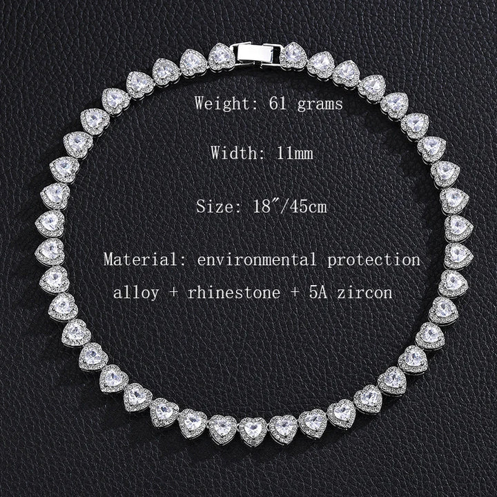 2025 New 45CM Luxurious Shiny Heart type Rhinestone Hop Tennis Chain Bracelet Necklace for Women Men Jewelry Gift