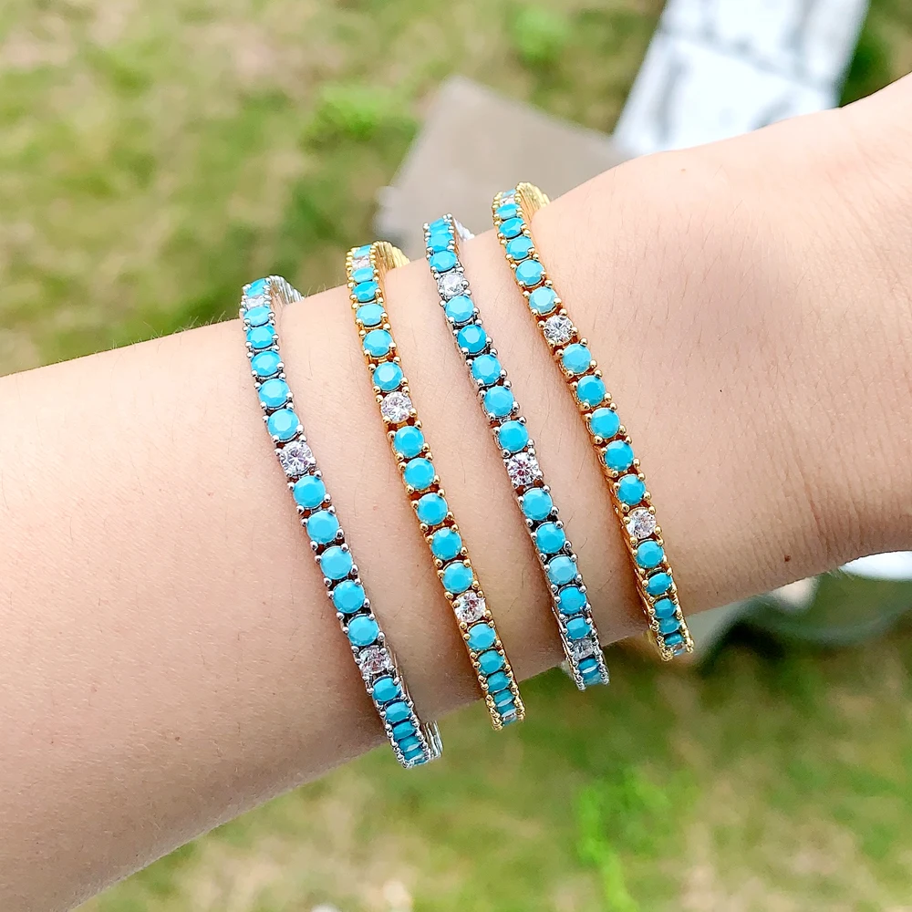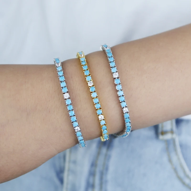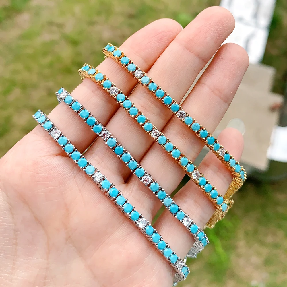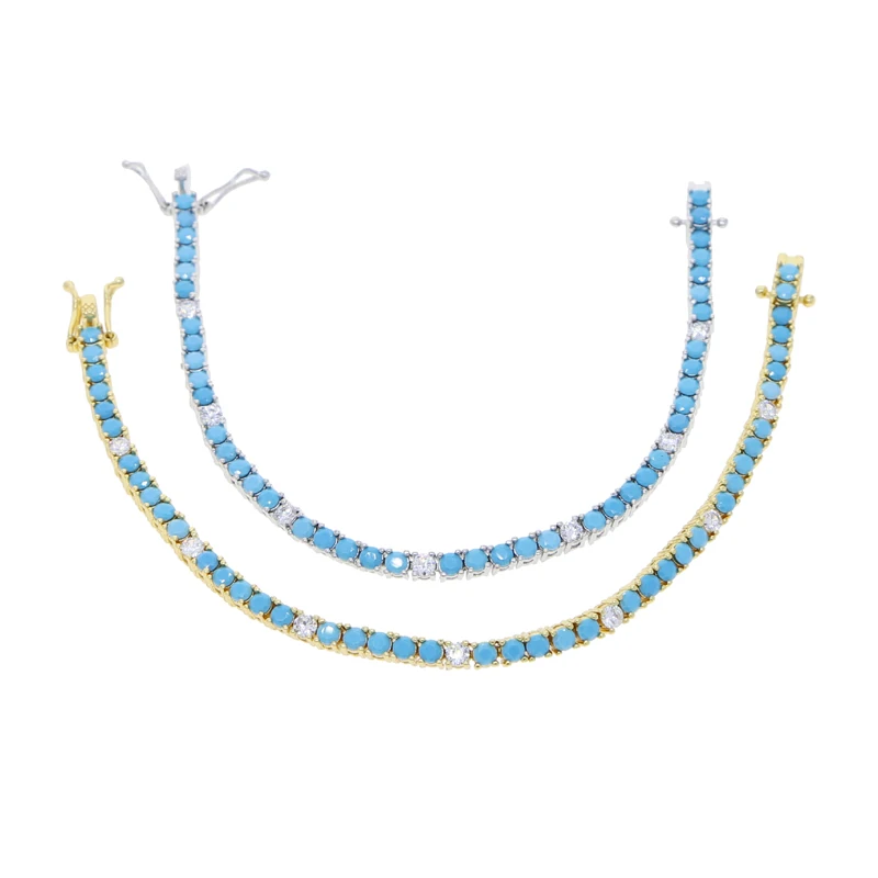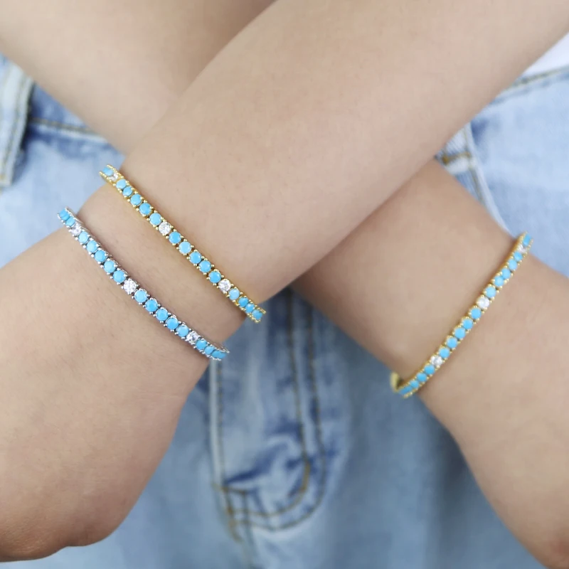 2025 New Arrive 3mm Turquoises Bracelet Women Clear Cz Paved Beaded Tennis Chain Bracelet Handmade Jewelry