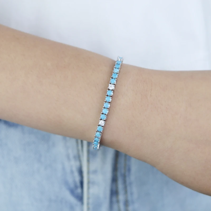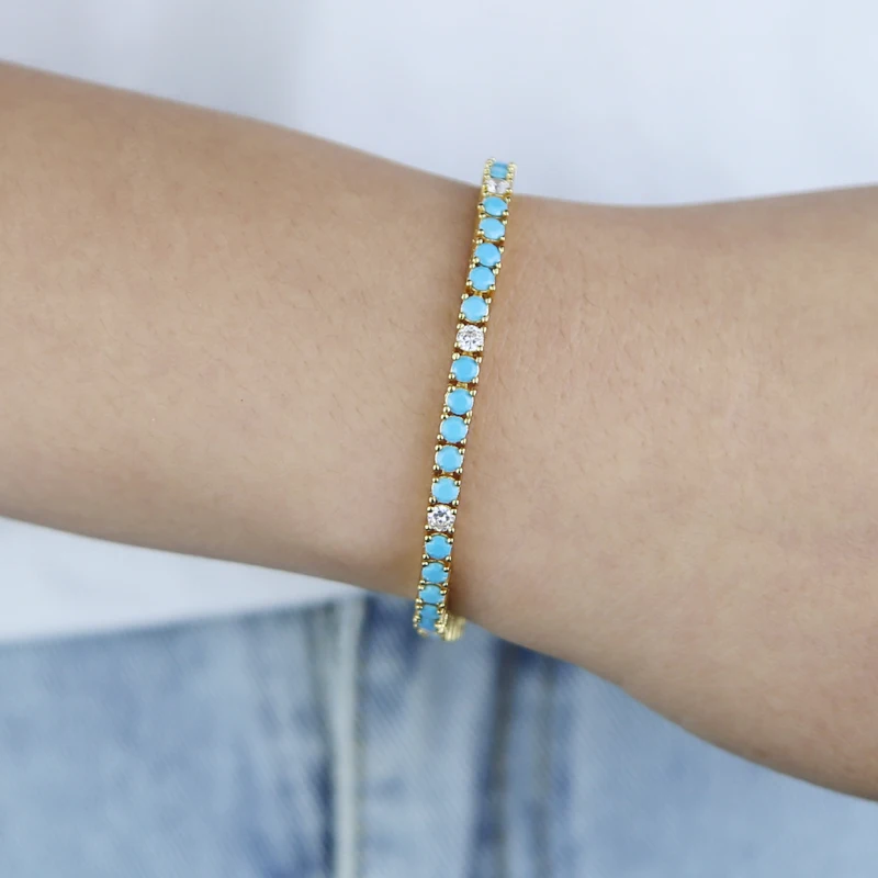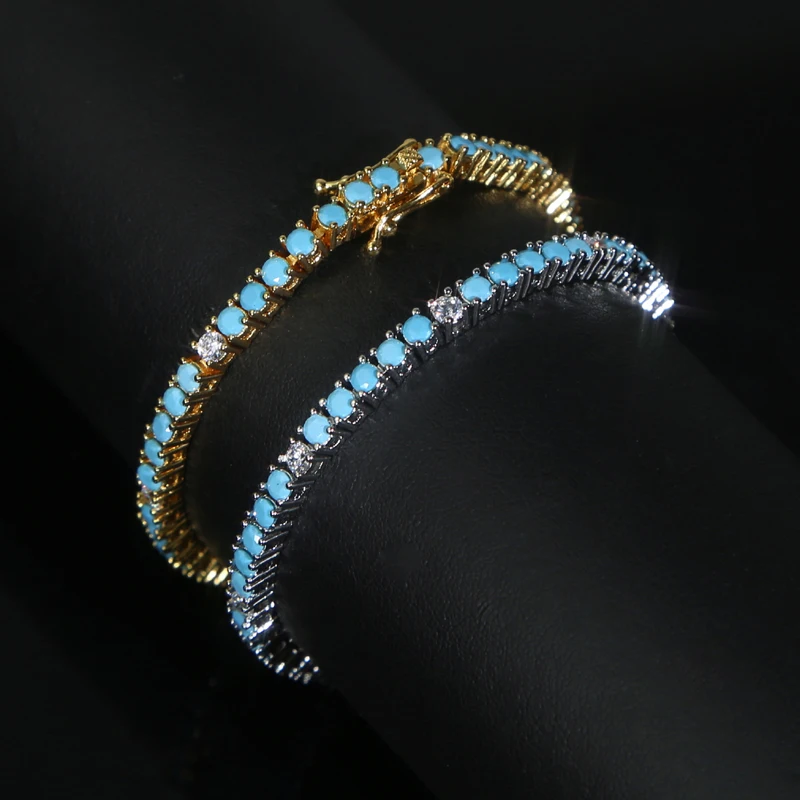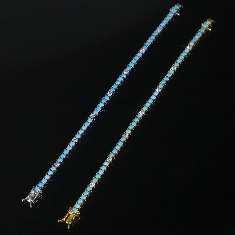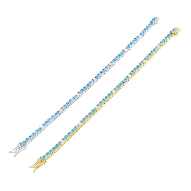 2025 New Arrive 3mm Turquoises Bracelet Women Clear Cz Paved Beaded Tennis Chain Bracelet Handmade Jewelry