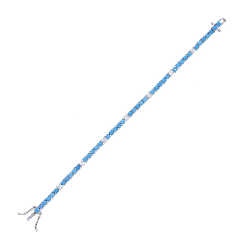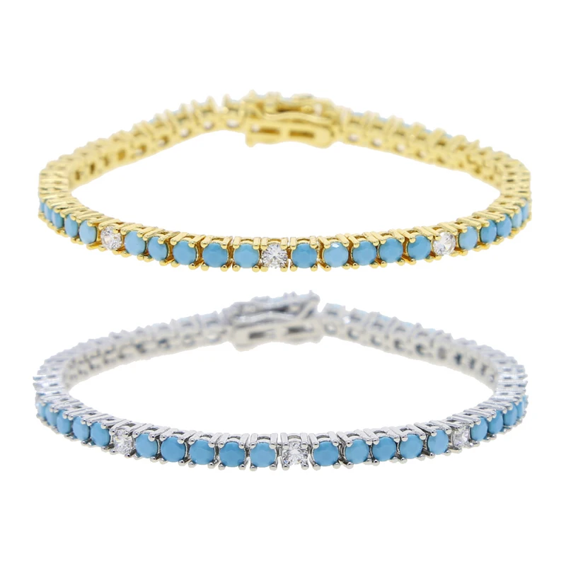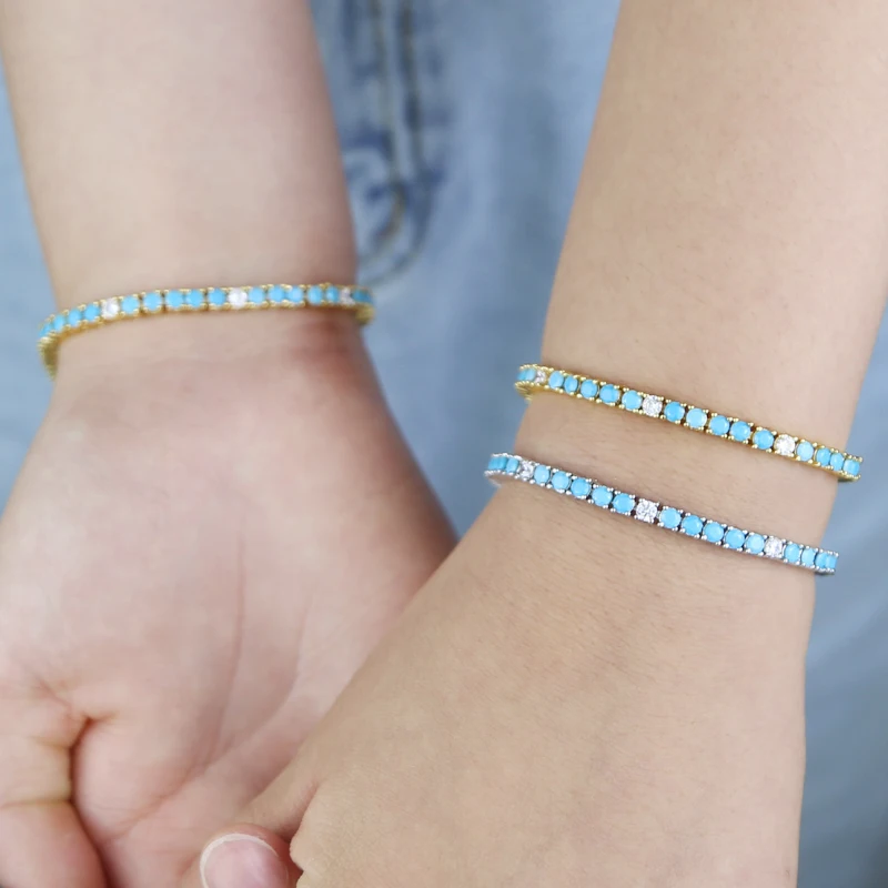 2025 New Mix White Turquoises Round 3MM CZ Prong Set Tennis Chain Bracelet Gold Color Fashion High Quality Women Jewelry