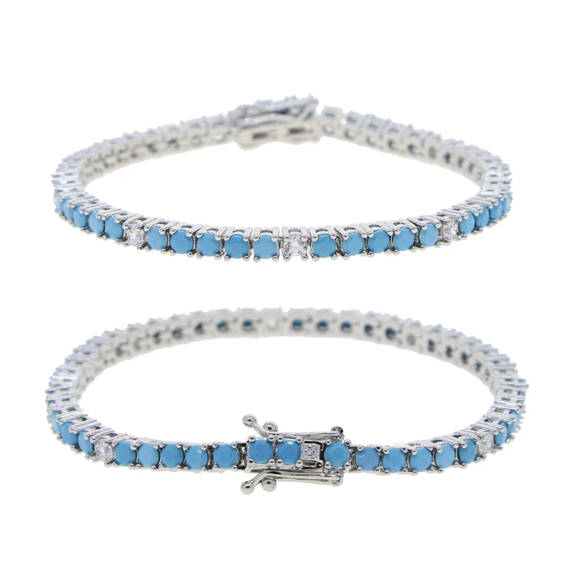 Prong Setting Round 3mm Turquoise Tennis Chain Bracelet Micro Pave 5A CZ Bling Fashion Women Handmade Jewelry