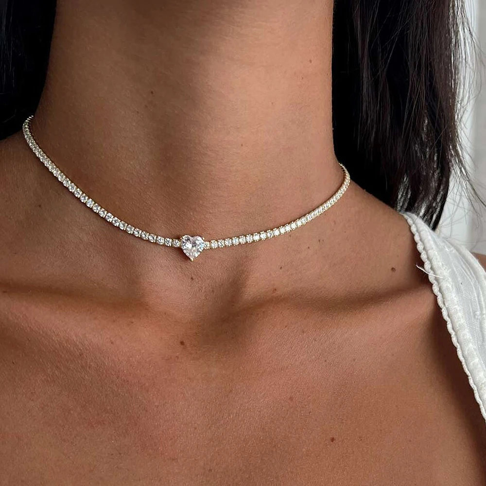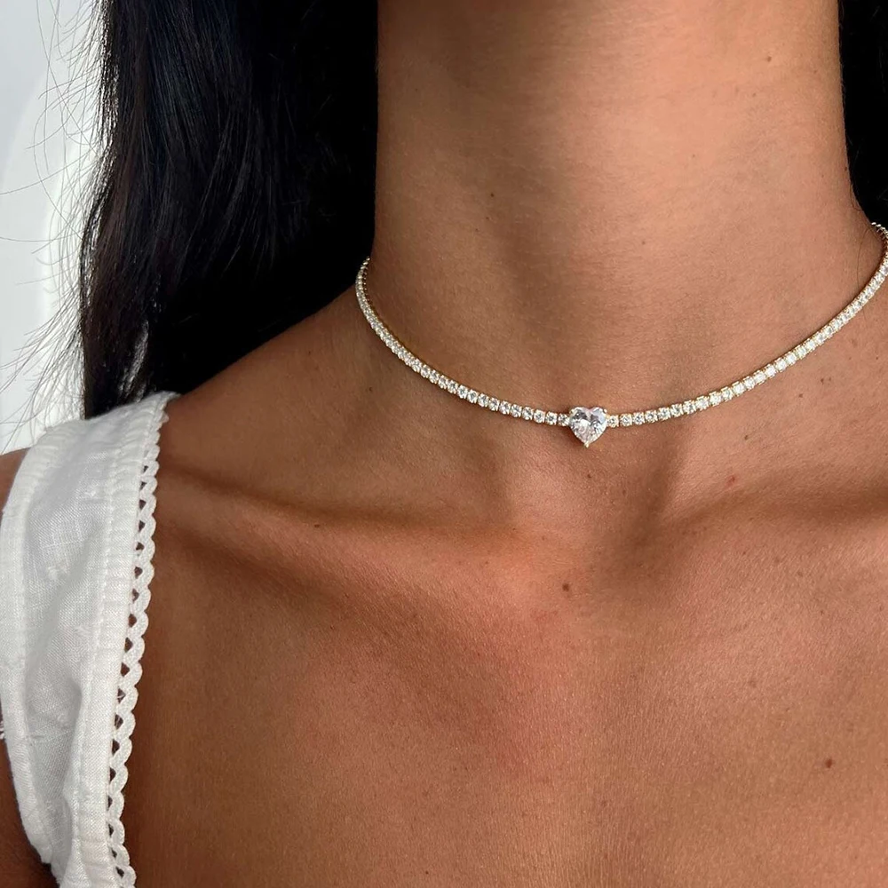2mm Full Moissanite Diamond Tennis Necklace With Heart Cut Diamond Riviera Necklace S925 Silver Adjustable Choker for Women
