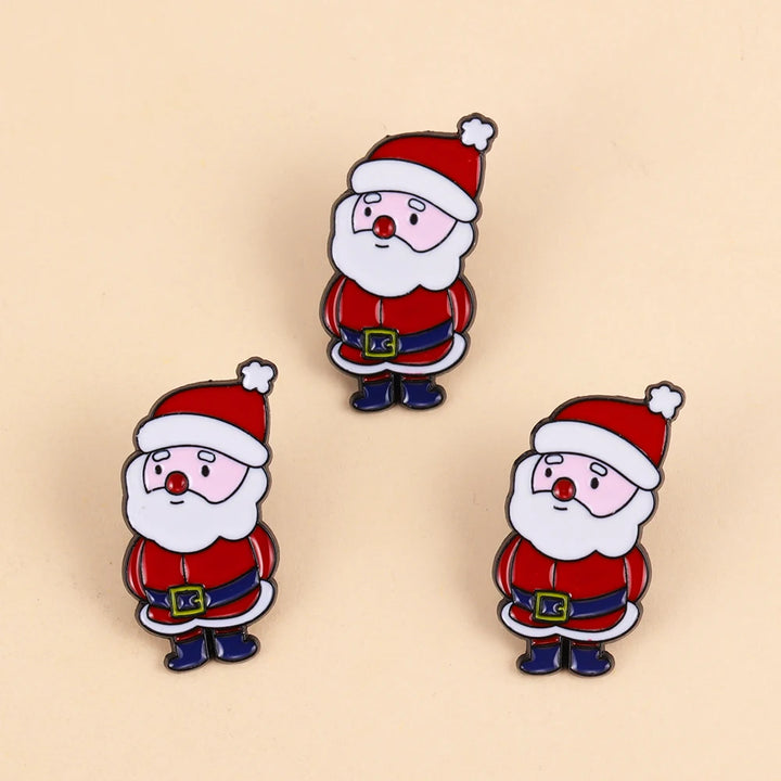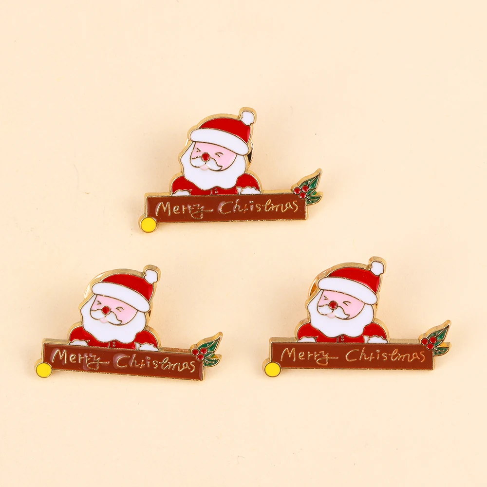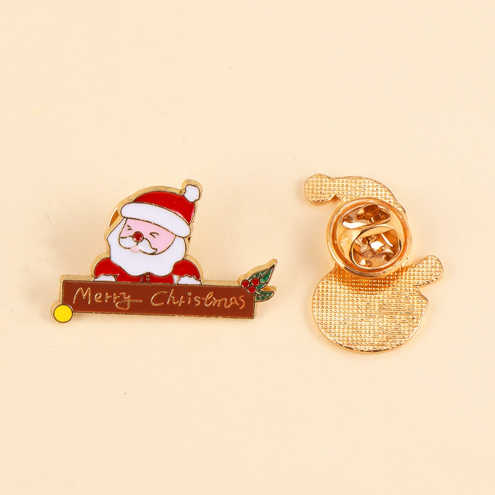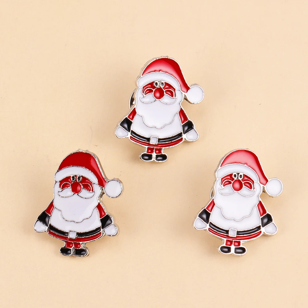 2Pcs/set Christmas Jewelry Gift For Women Men Metal Enamel Brooches Santa Claus Snowman Elk Brooch Kids New Year Sweater Pins