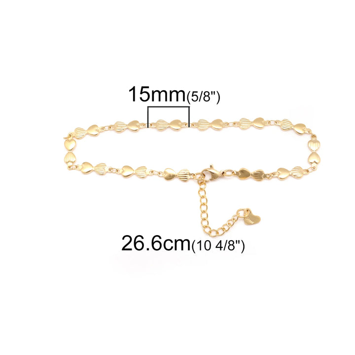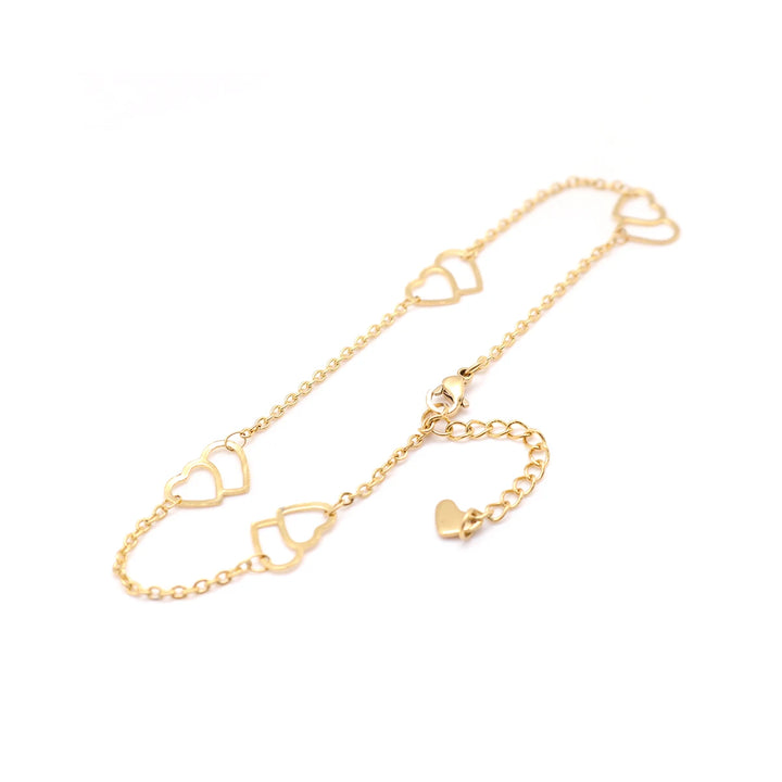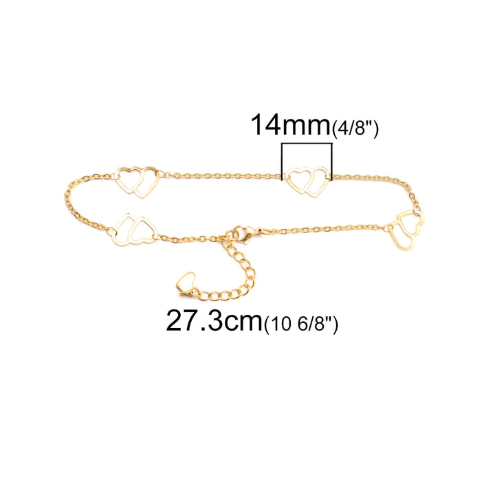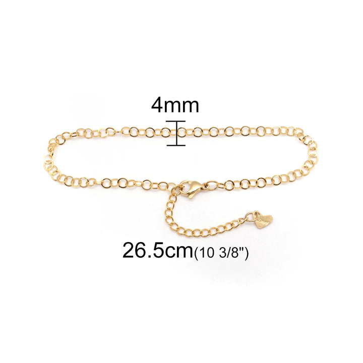 304 Stainless Steel Anklet Gold Color Round Heart Chain Anklet Bracelets For Women on the leg Anklet Jewelry Accessories, 1 PCs