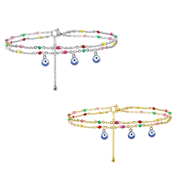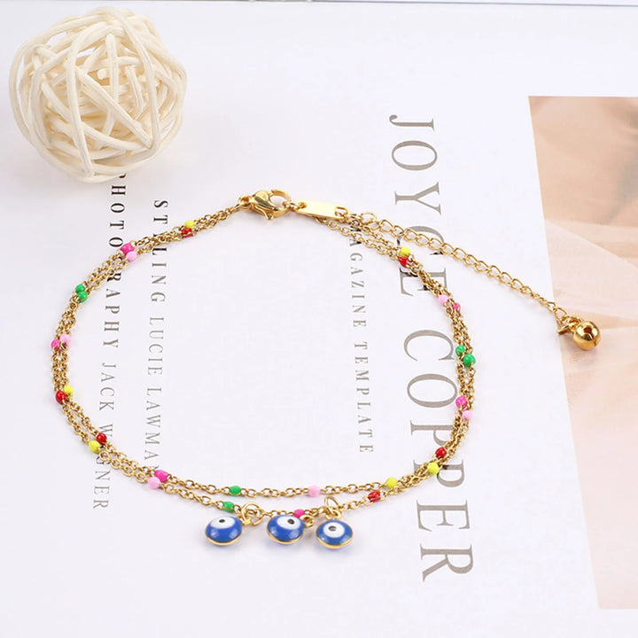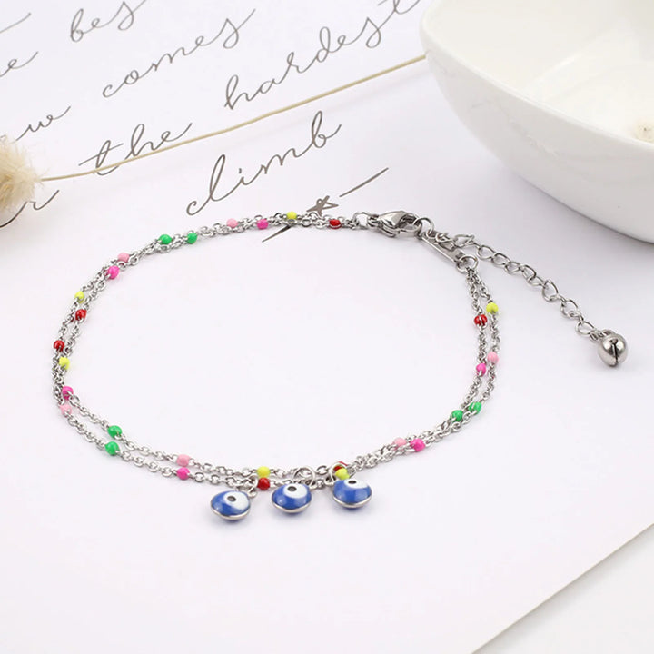 304 Stainless Steel Stylish Link Cable Chain Multilayer Layered Anklet Multicolor Evil Eye Jewelry 22cm(8 5/8") long, 1 Piece