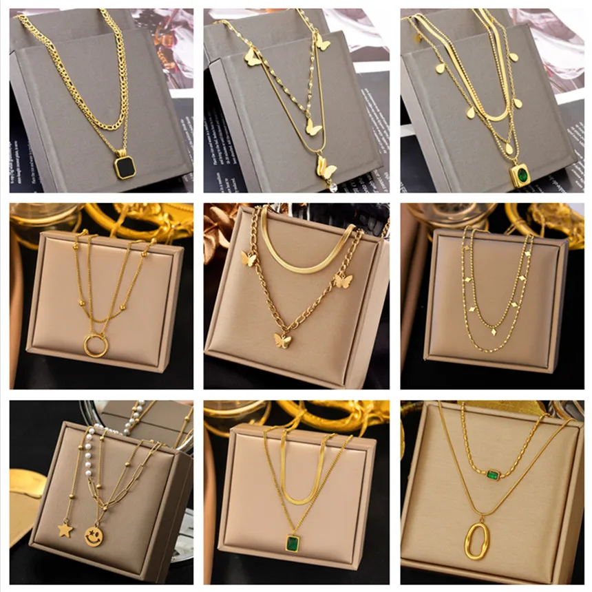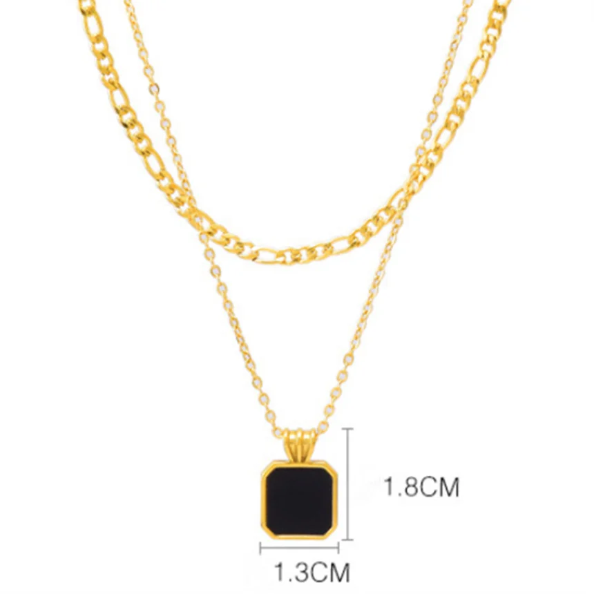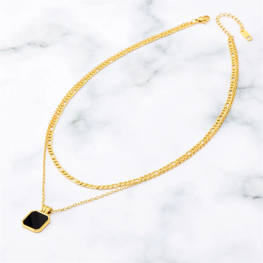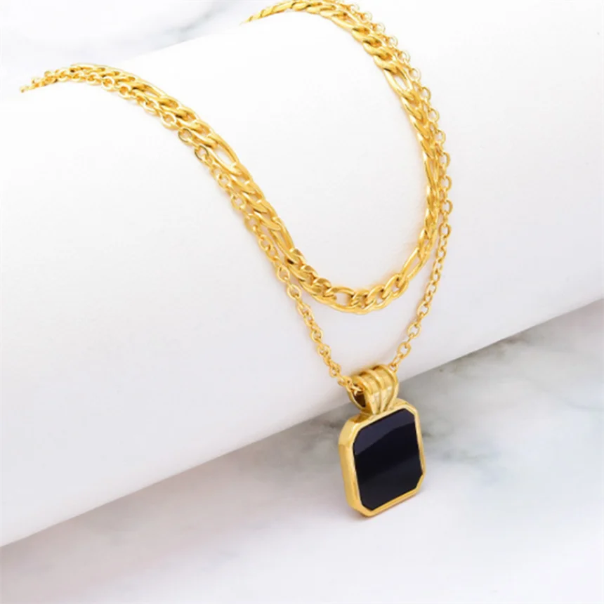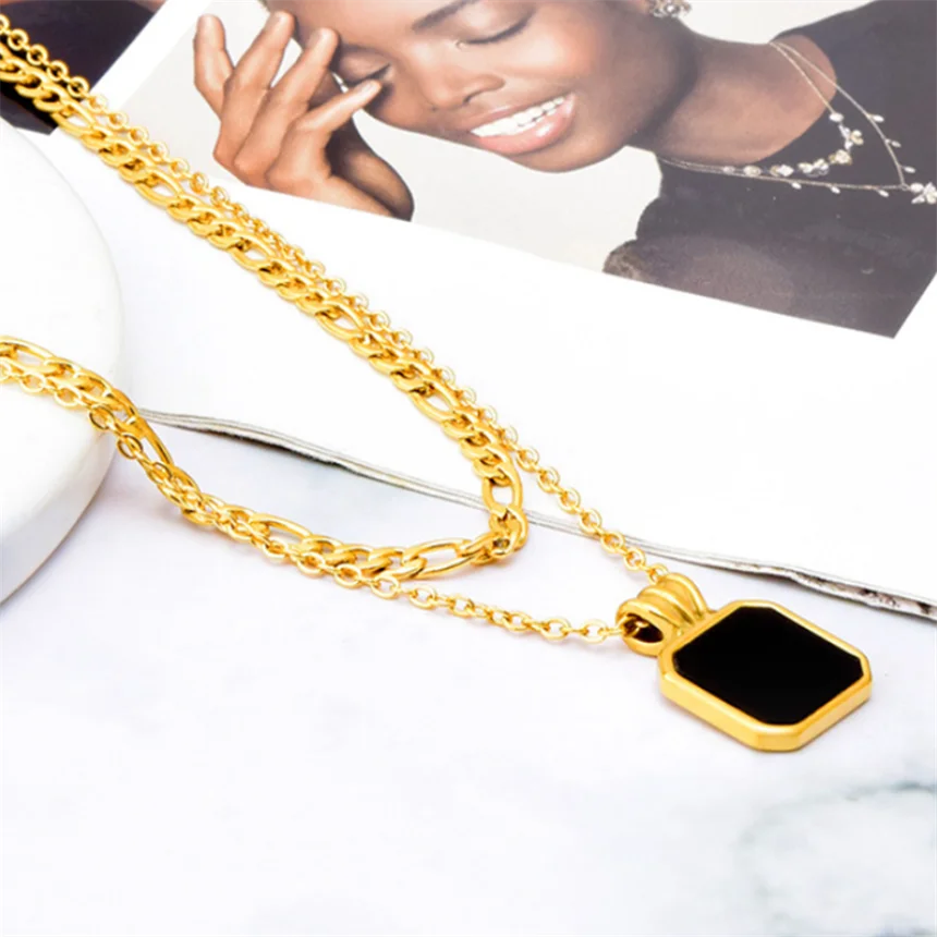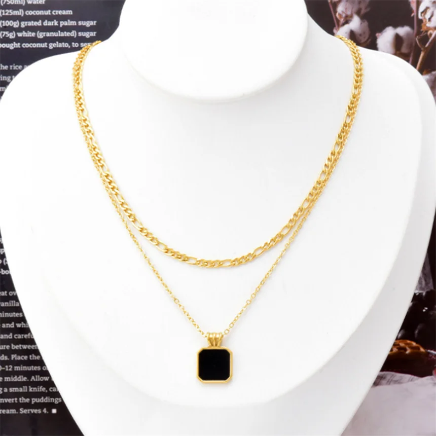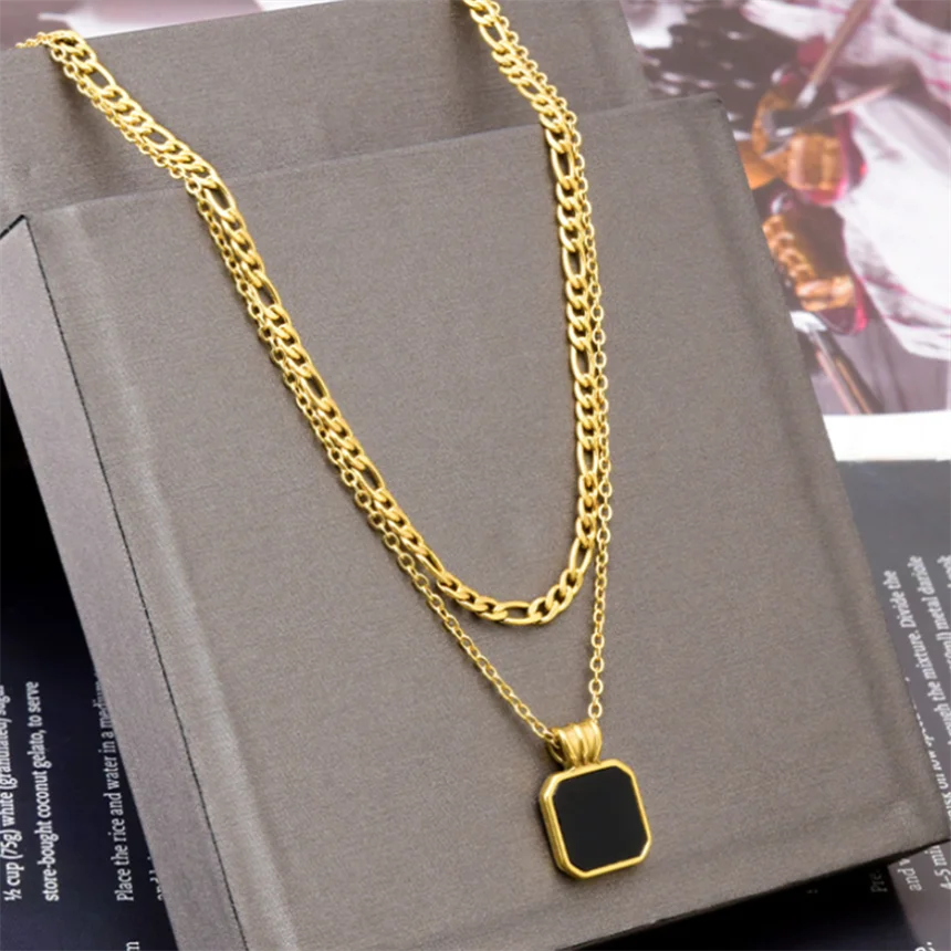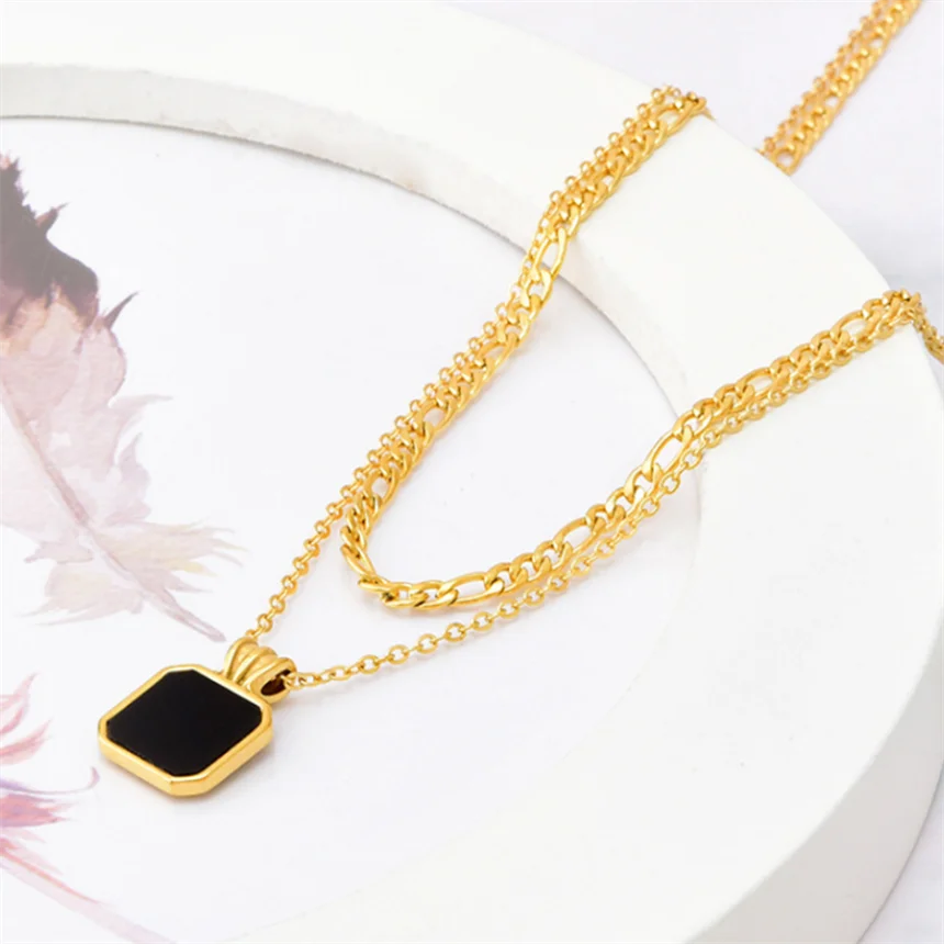 316L Stainless Steel 2 Layer Different Styles Geometry Black Square Pendant Necklace Ladies Fashion High Jewelry Party Gift N413