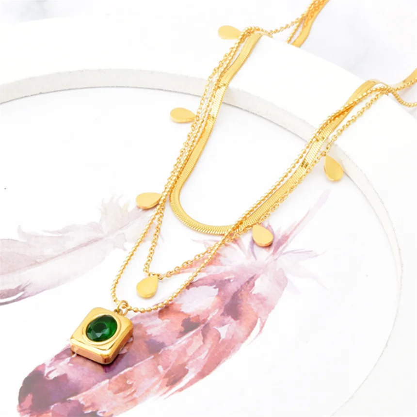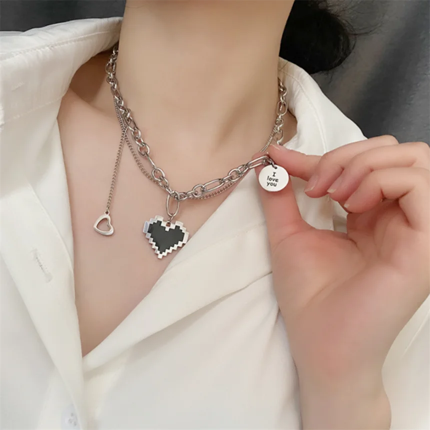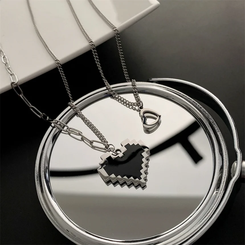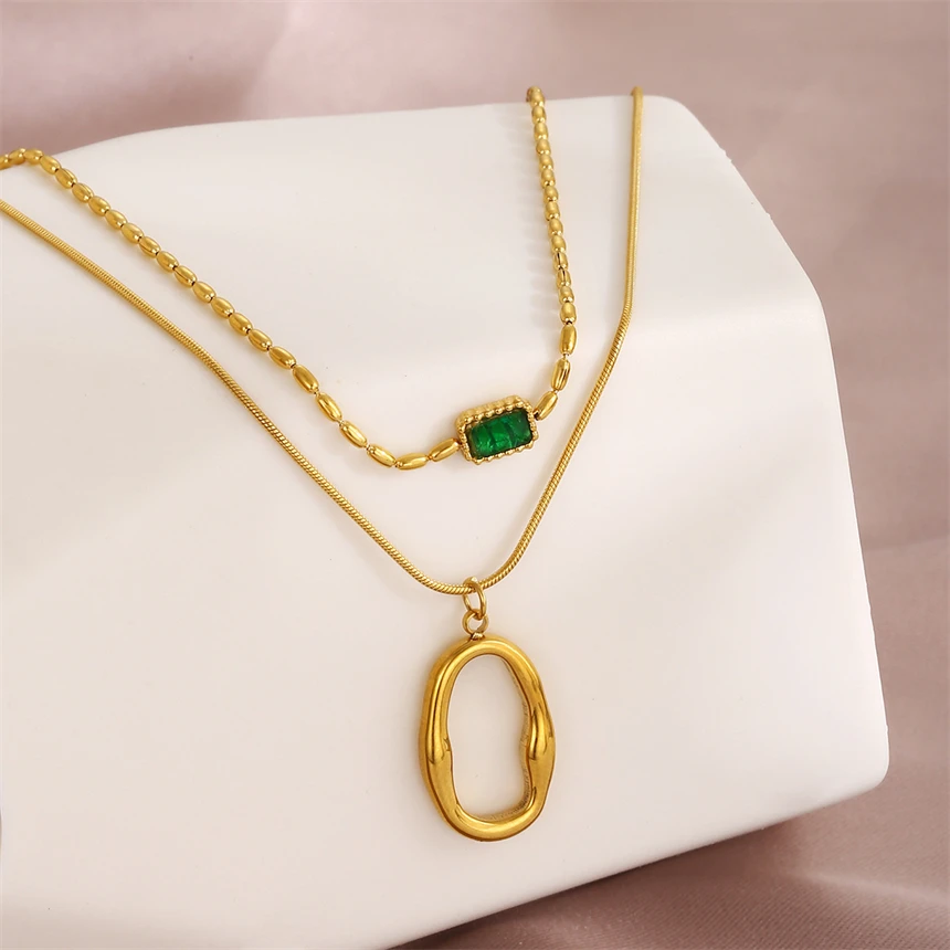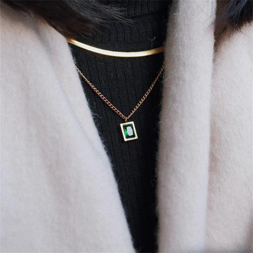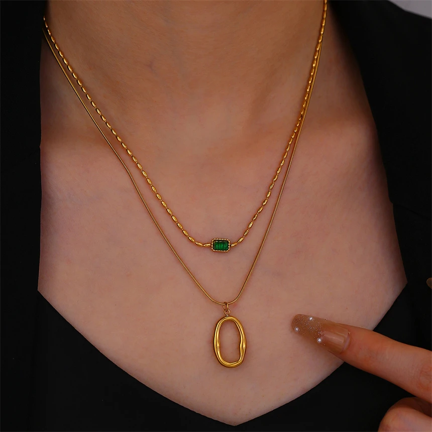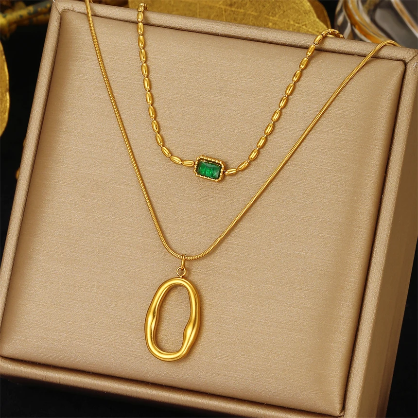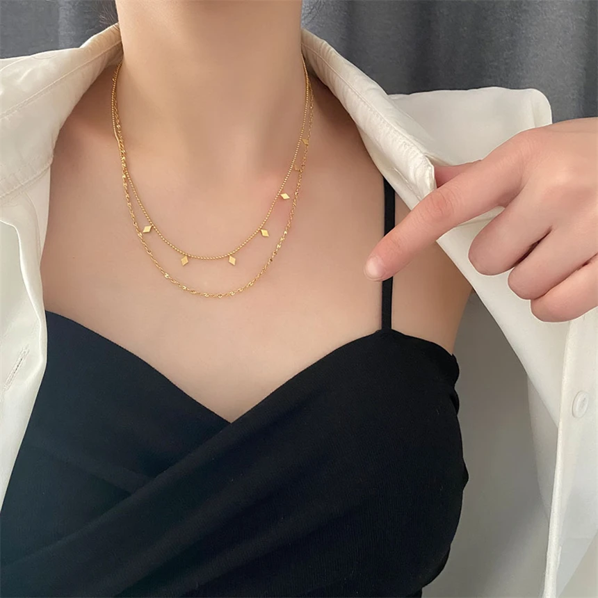 316L Stainless Steel 2 Layer Different Styles Geometry Black Square Pendant Necklace Ladies Fashion High Jewelry Party Gift N413