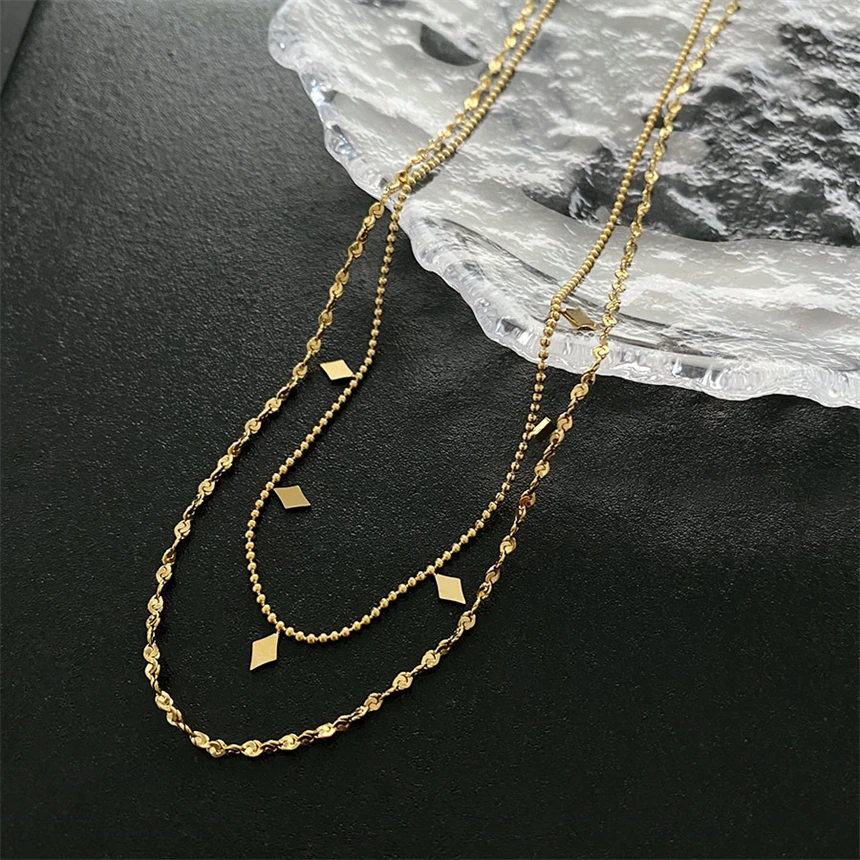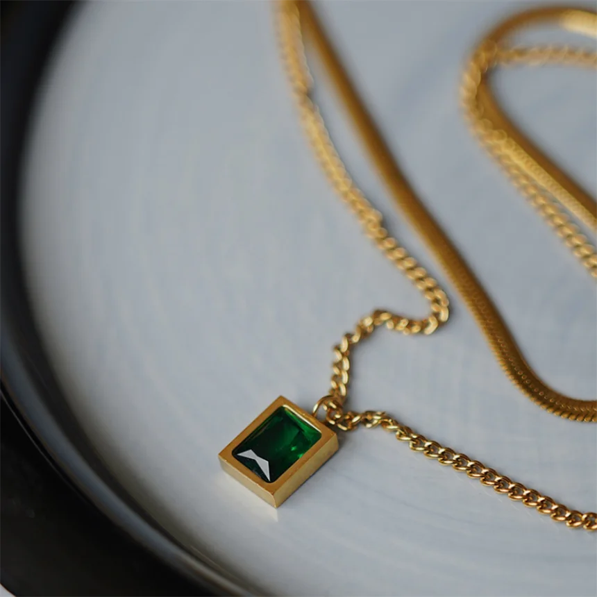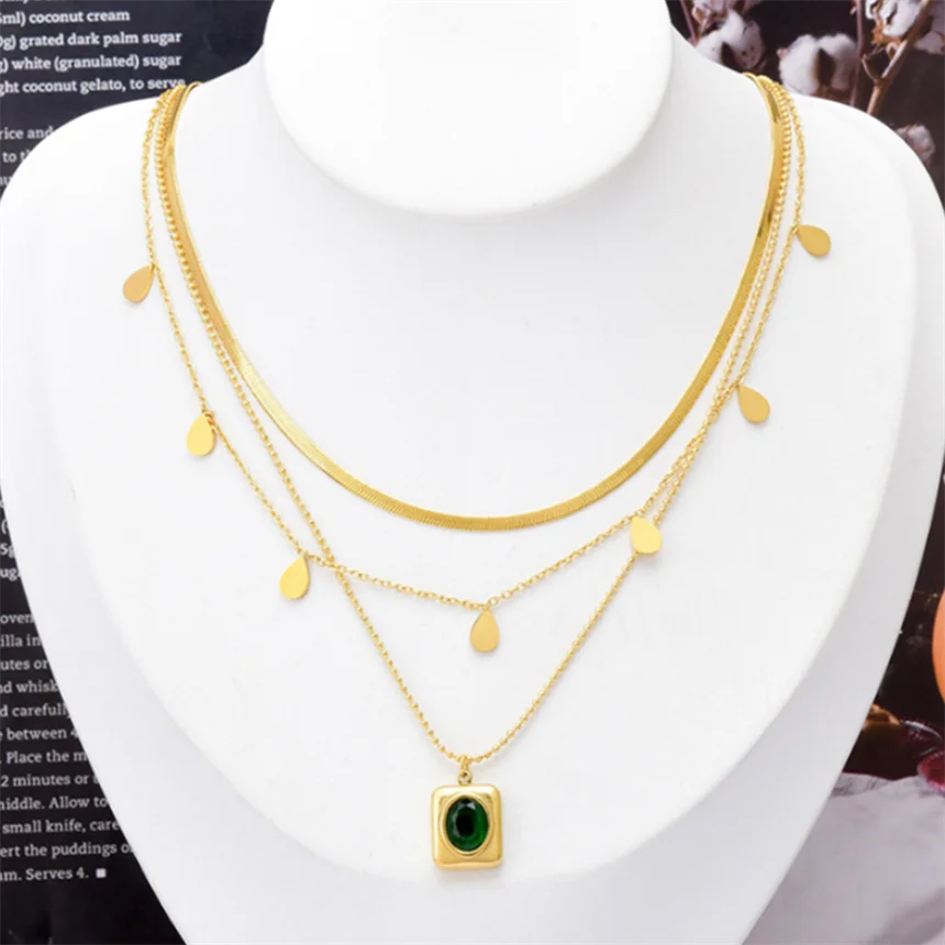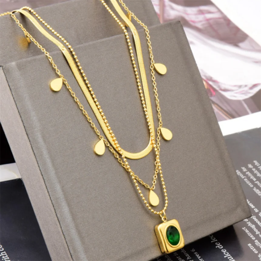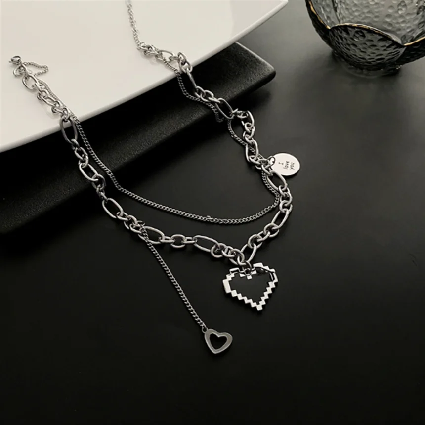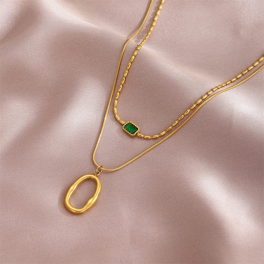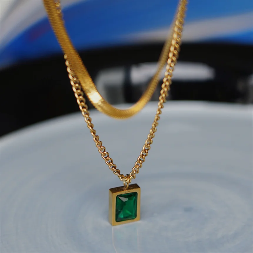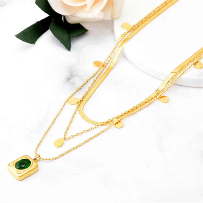 316L Stainless Steel 2 Layer Different Styles Geometry Black Square Pendant Necklace Ladies Fashion High Jewelry Party Gift N413