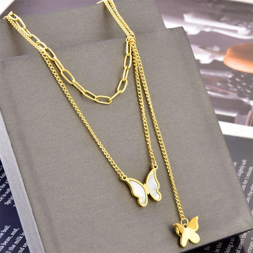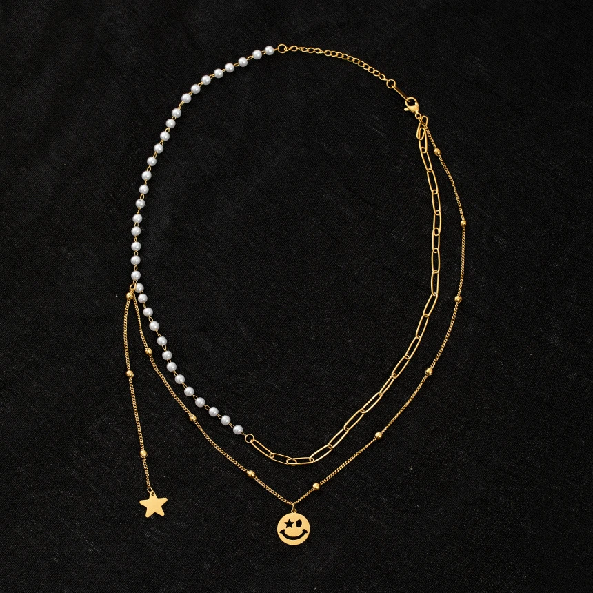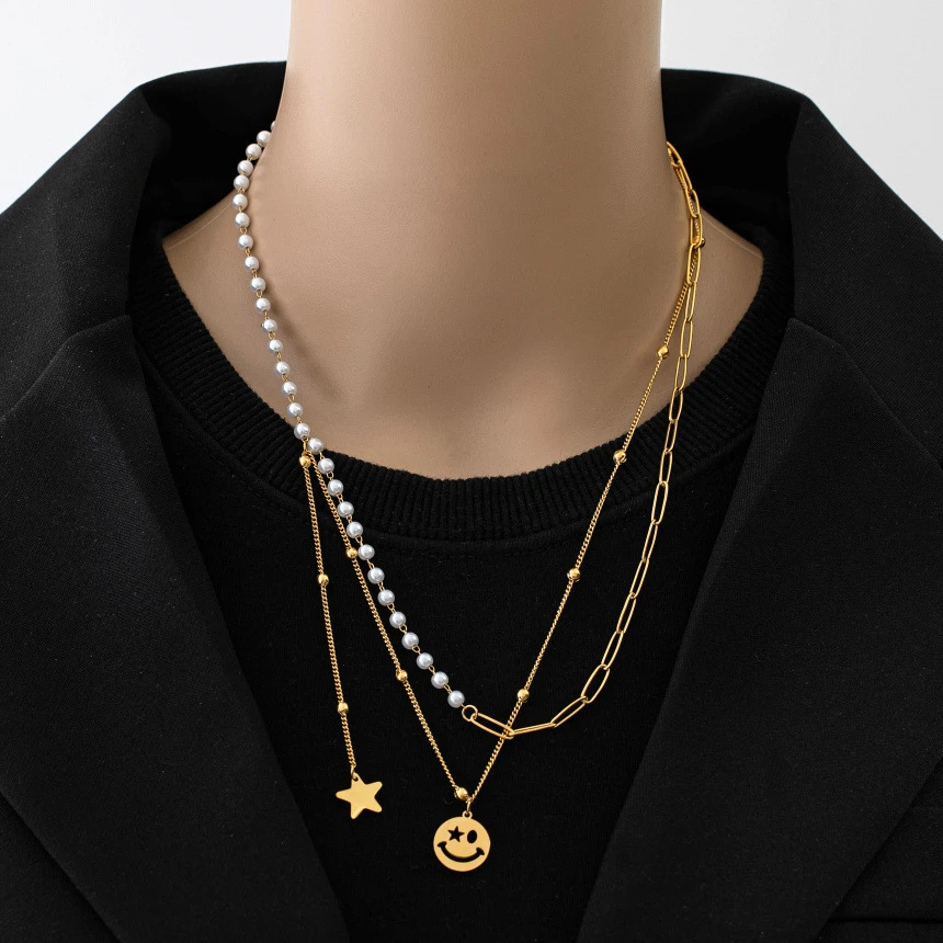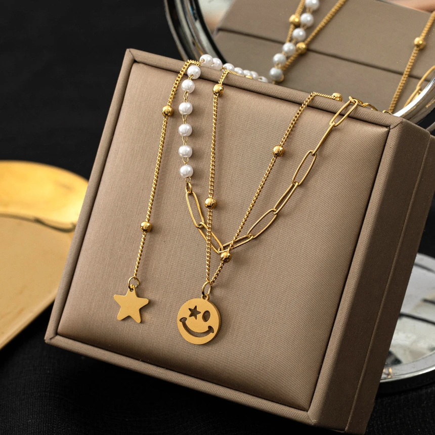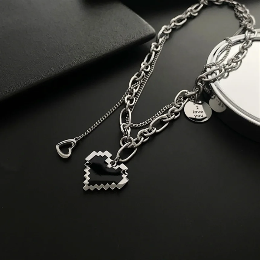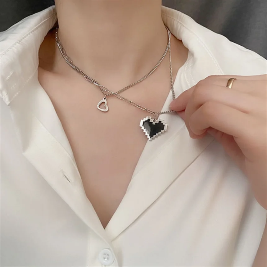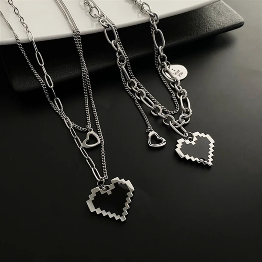 316L Stainless Steel 2 Layer Different Styles Geometry Black Square Pendant Necklace Ladies Fashion High Jewelry Party Gift N413