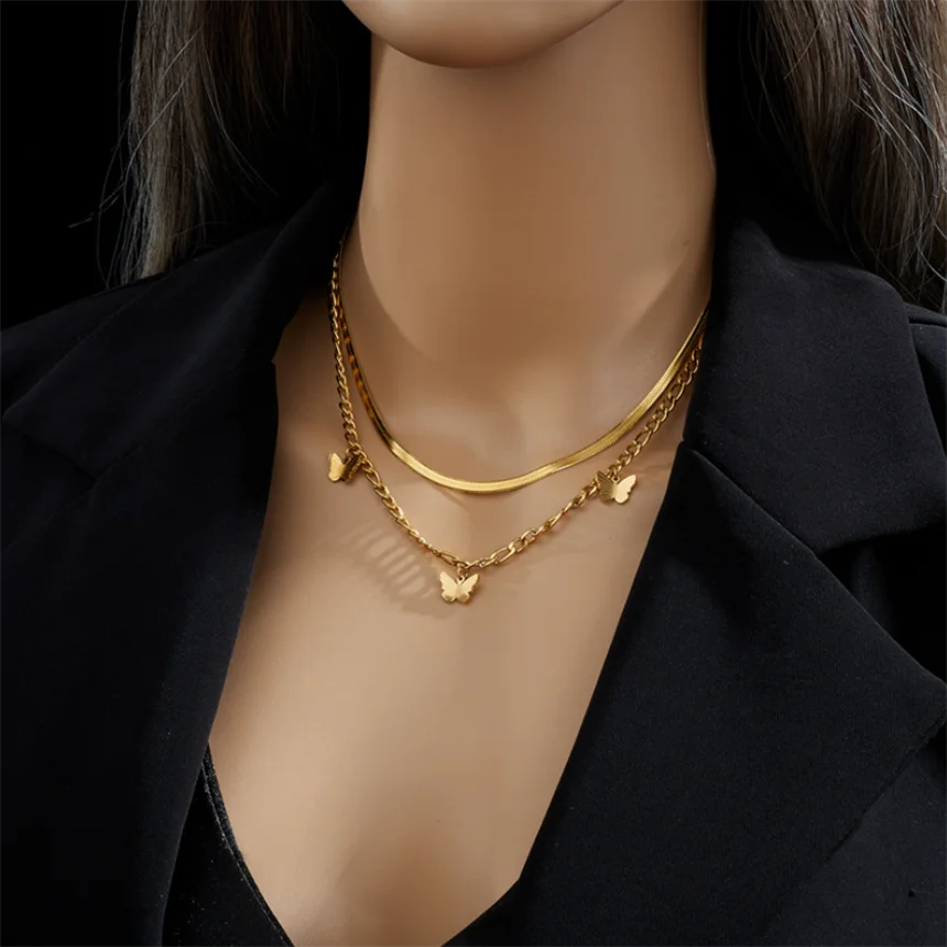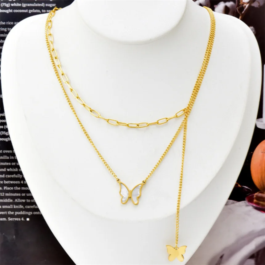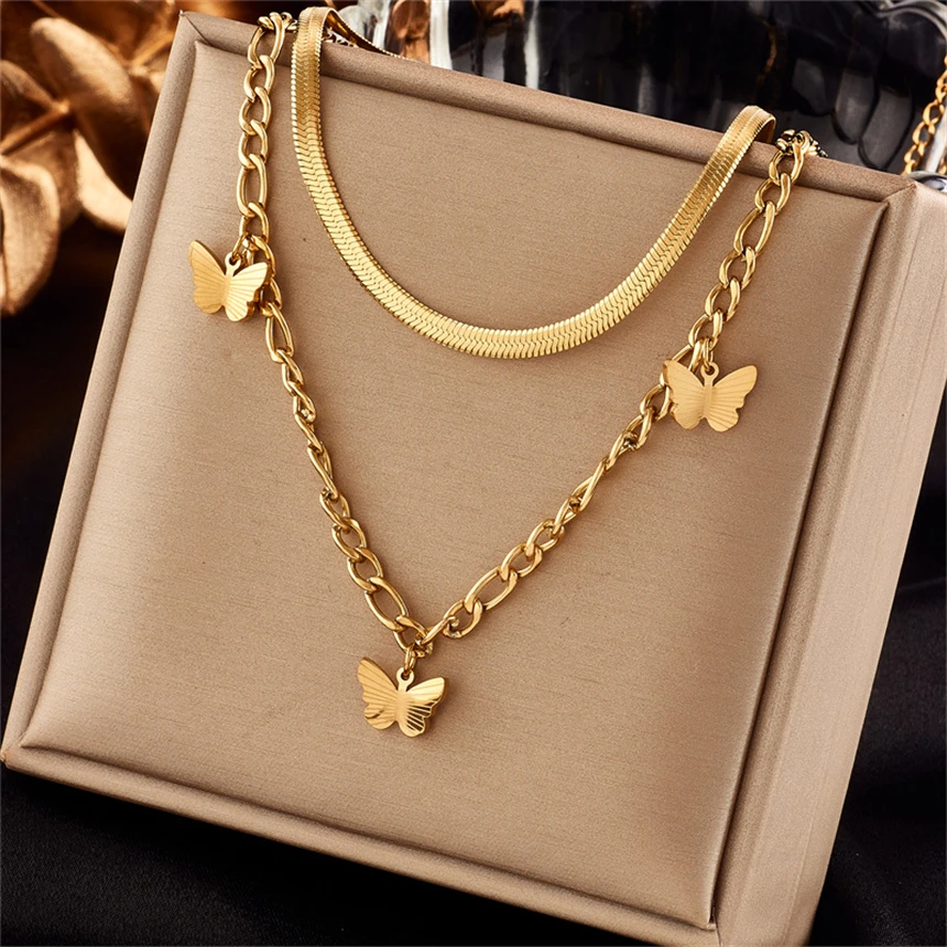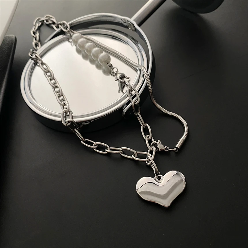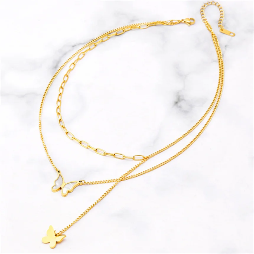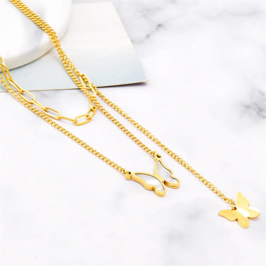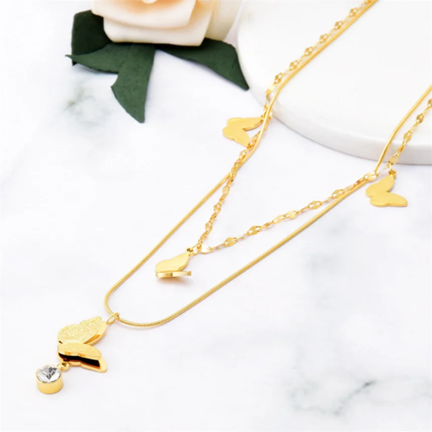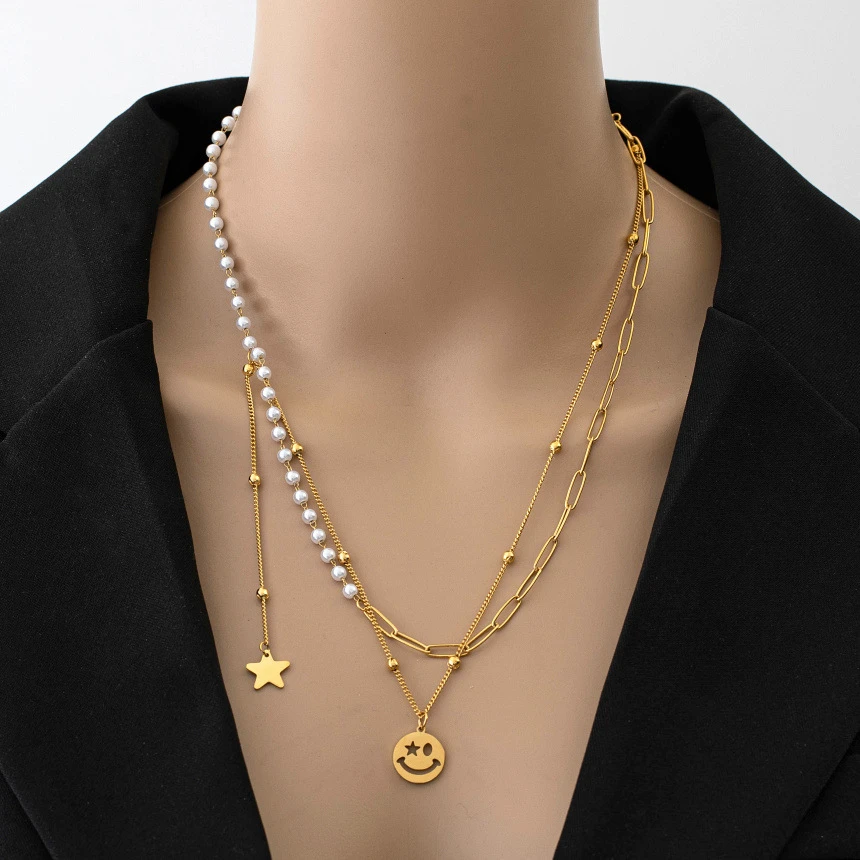 316L Stainless Steel 2 Layer Different Styles Geometry Black Square Pendant Necklace Ladies Fashion High Jewelry Party Gift N413