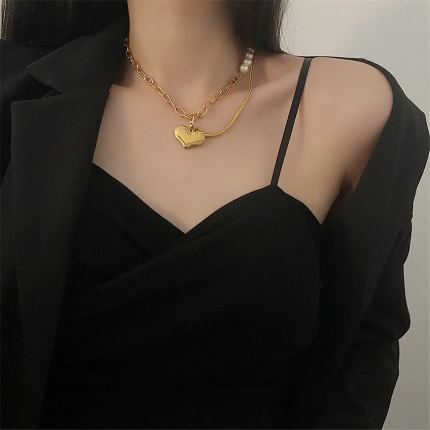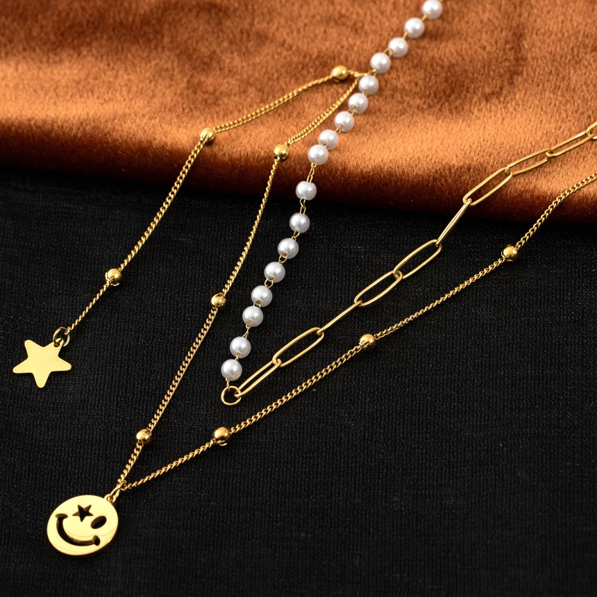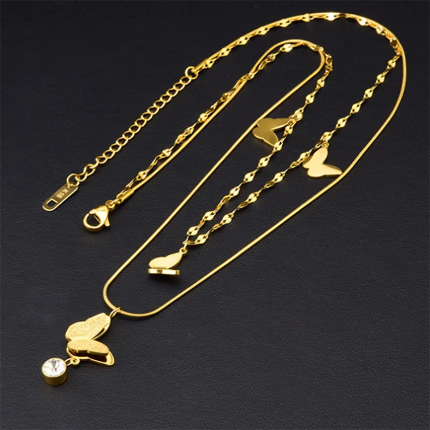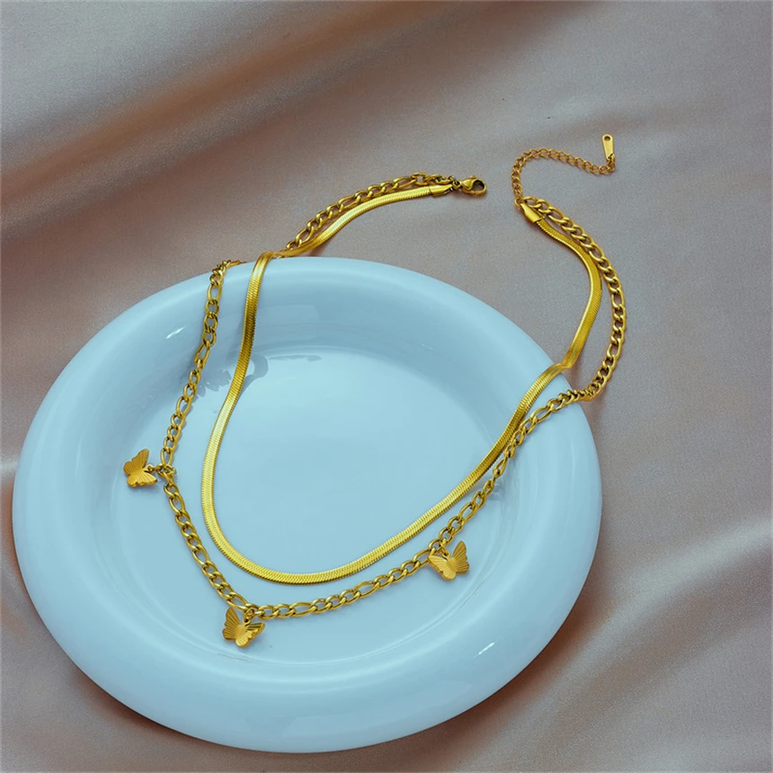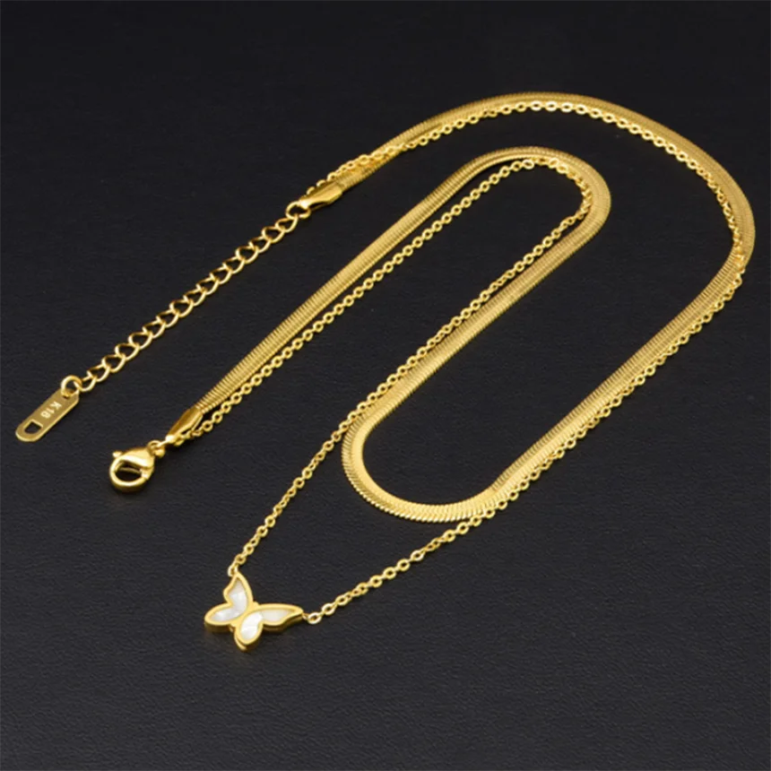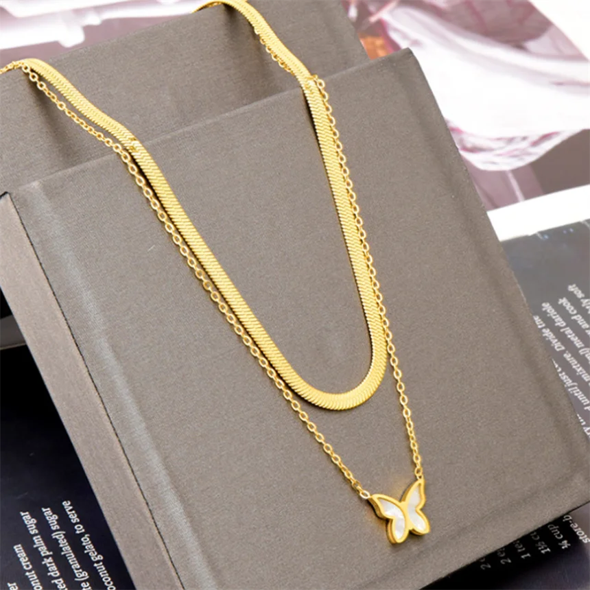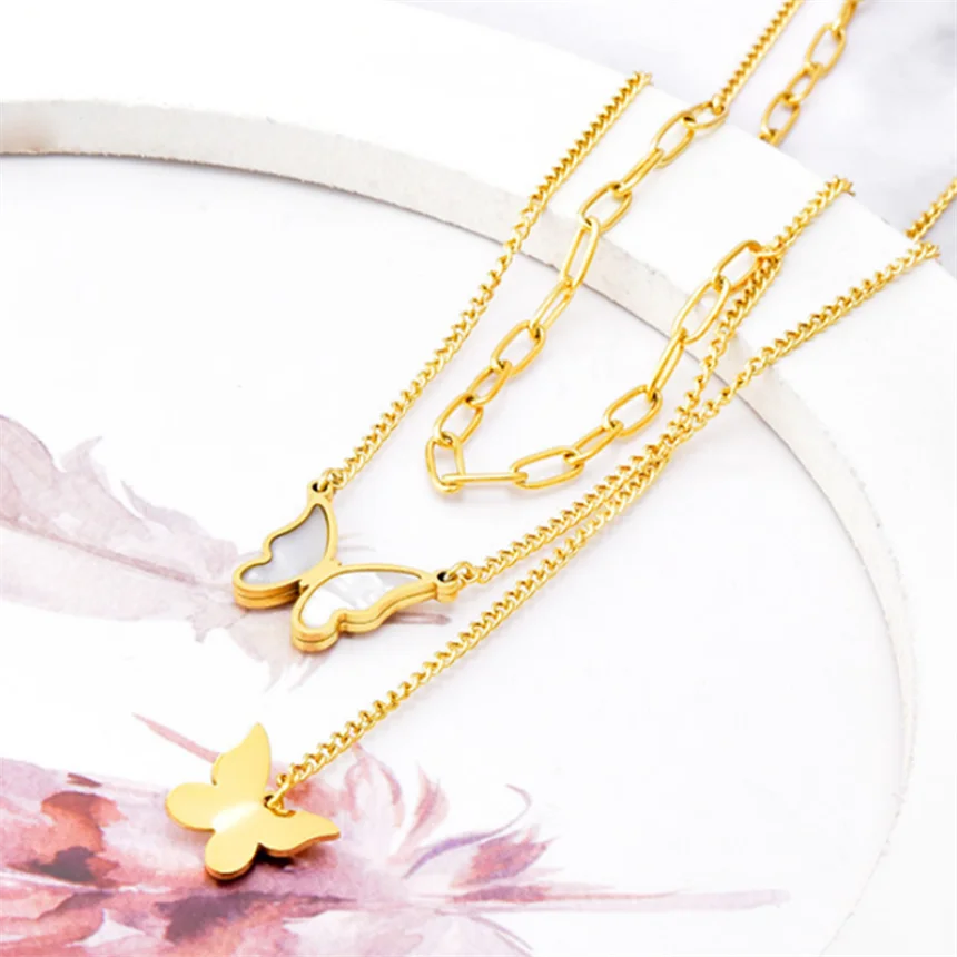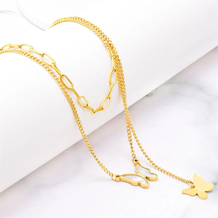 316L Stainless Steel 2 Layer Different Styles Geometry Black Square Pendant Necklace Ladies Fashion High Jewelry Party Gift N413