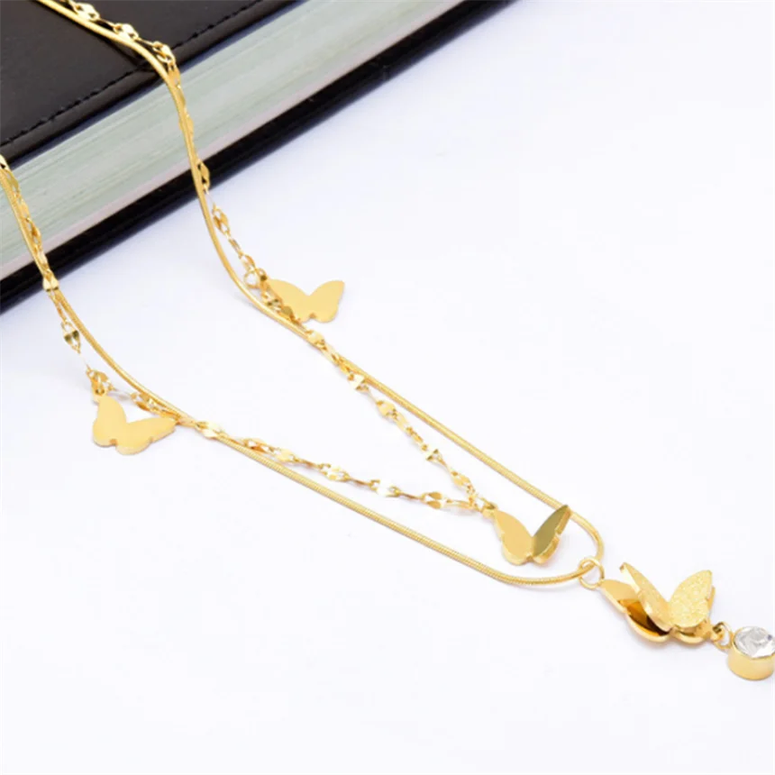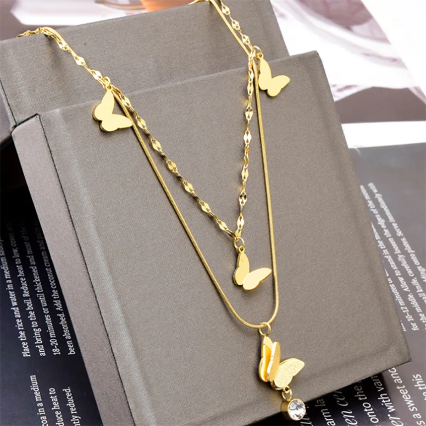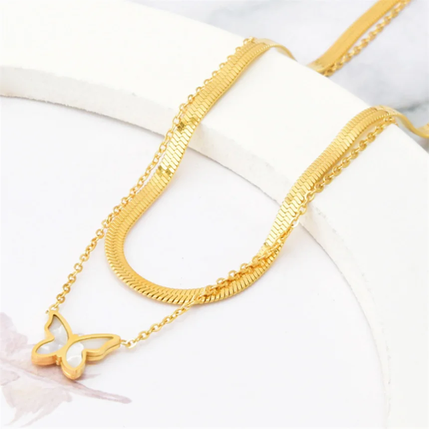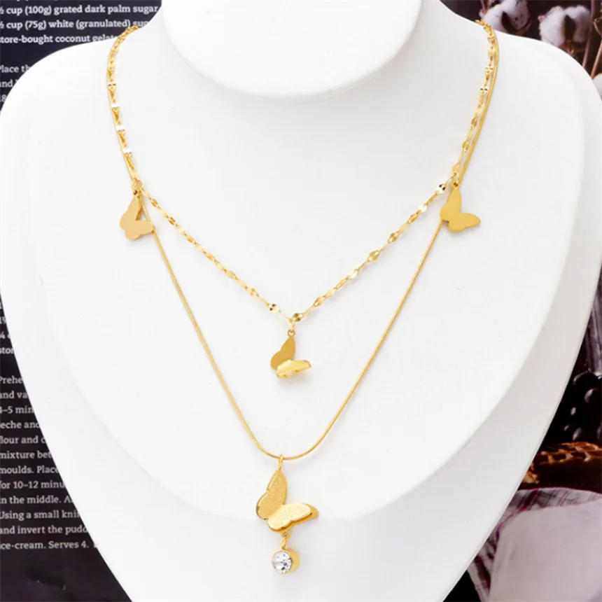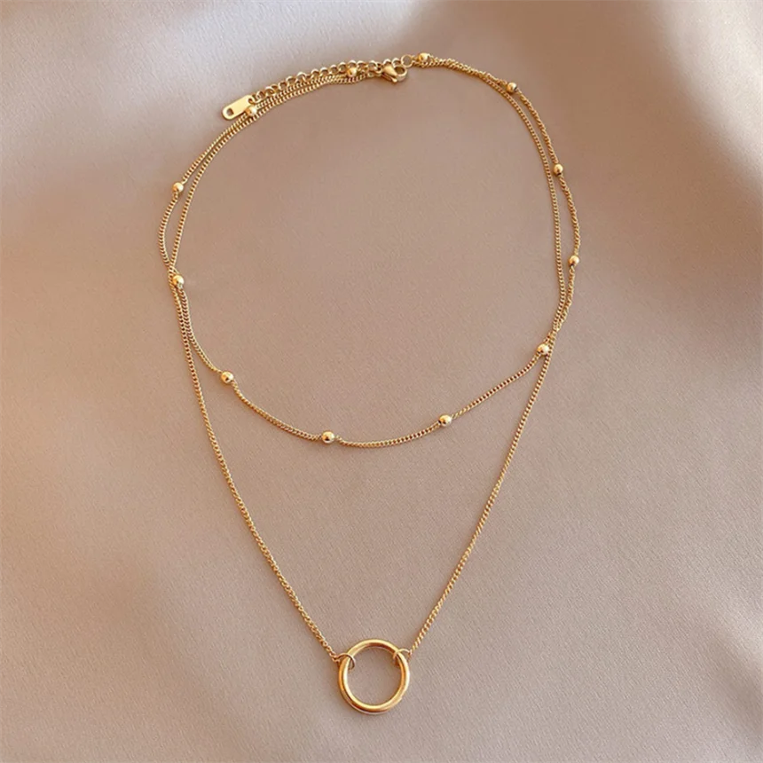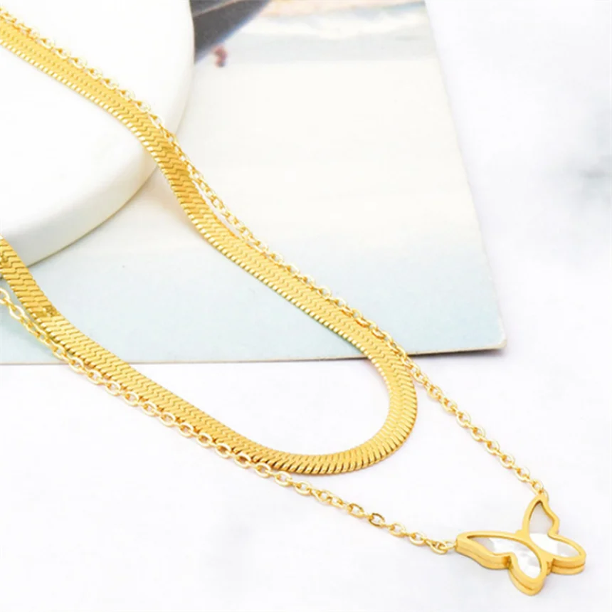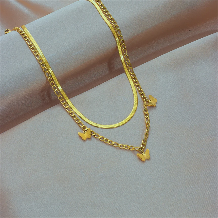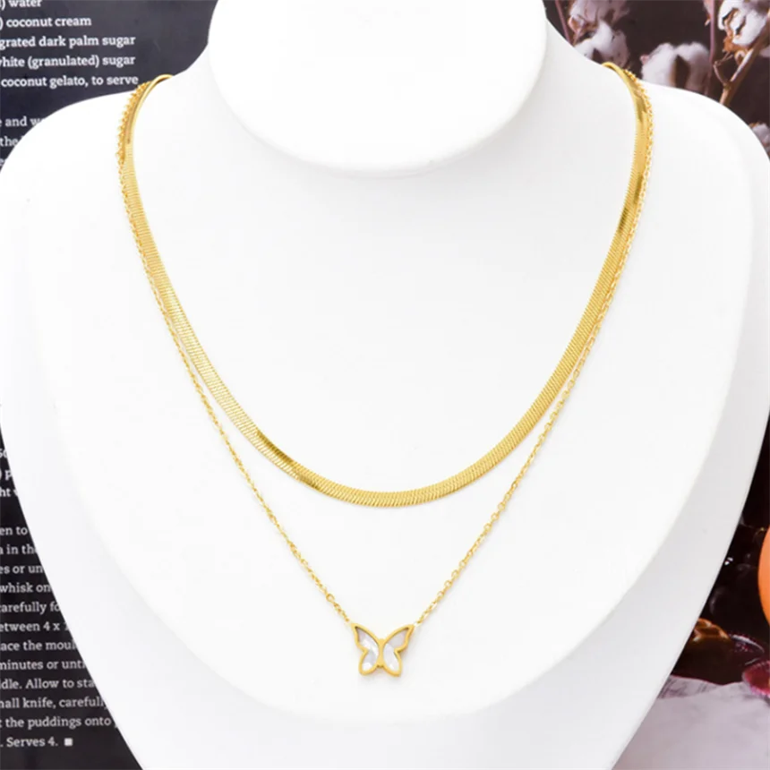 316L Stainless Steel 2 Layer Different Styles Geometry Black Square Pendant Necklace Ladies Fashion High Jewelry Party Gift N413