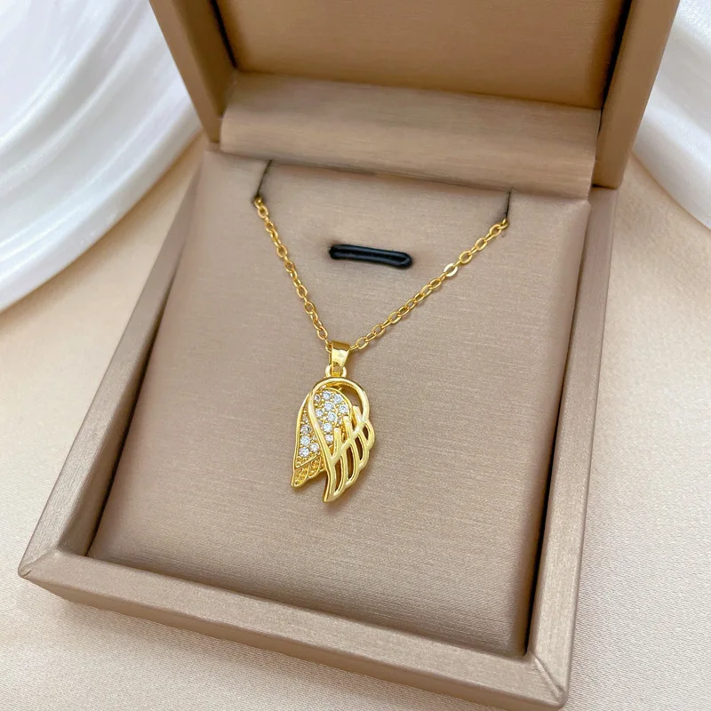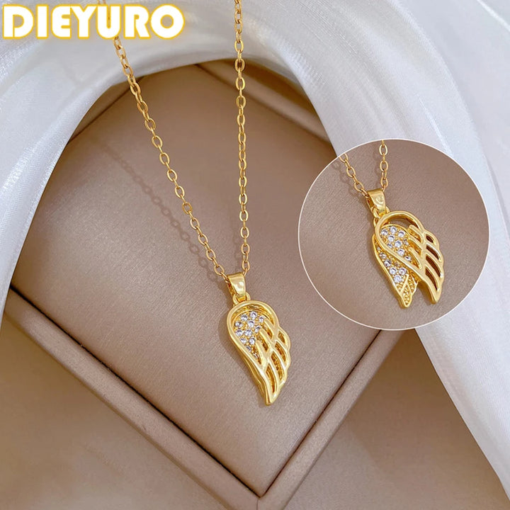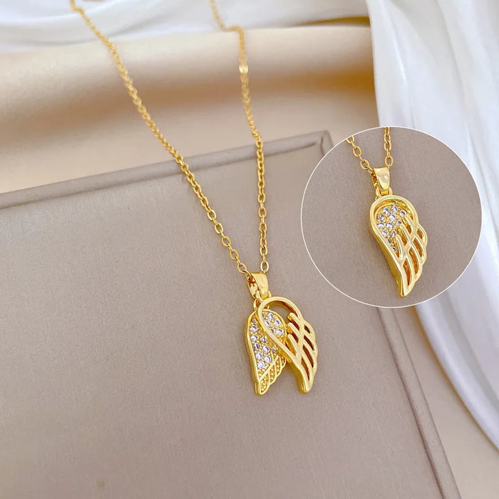 316L Stainless Steel Golden Hollow Out Wings Feather Necklace For Women New Trend Clavicle Chain Jewelry Holiday Gift