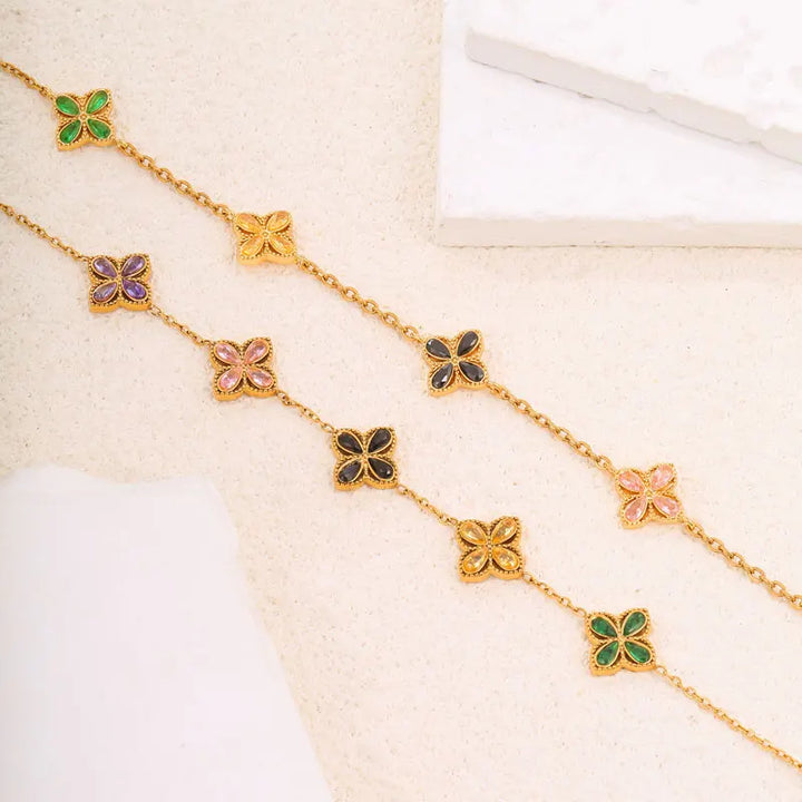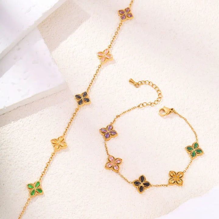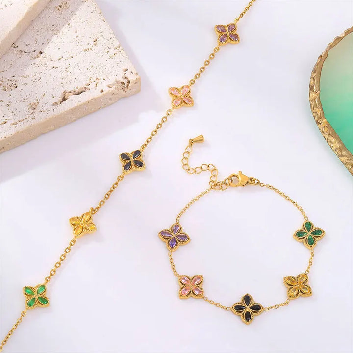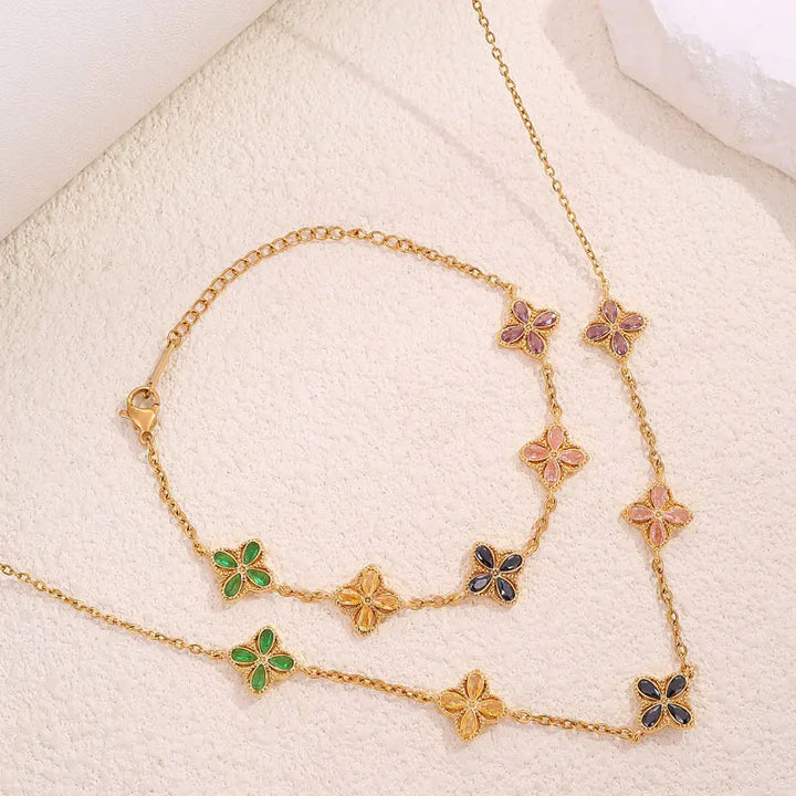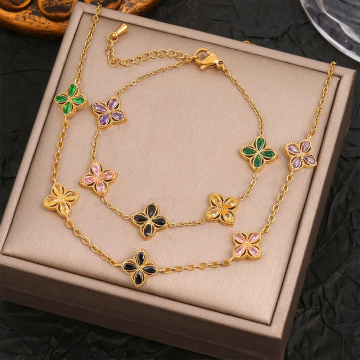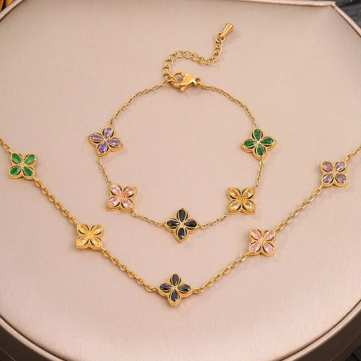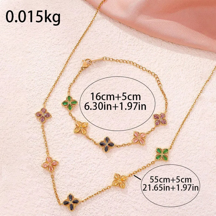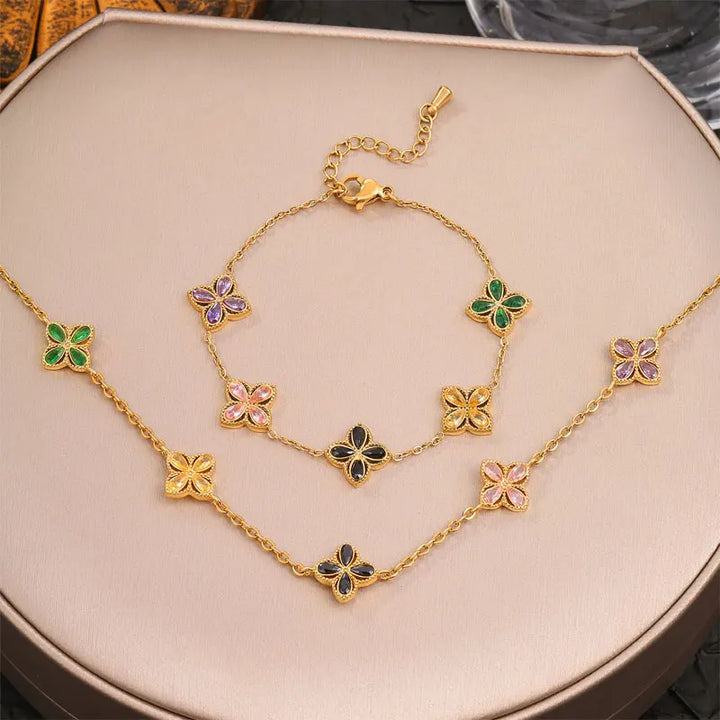 316L Stainless Steel Luxury Zircon Four-leaf Clover Necklace Bracelet Suit for Women Lucky Clover Jewelry Set Not-fading Bijoux