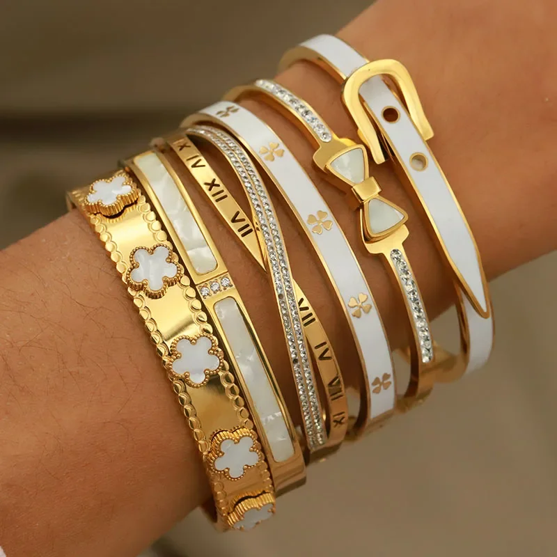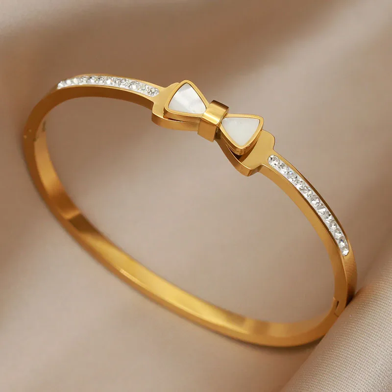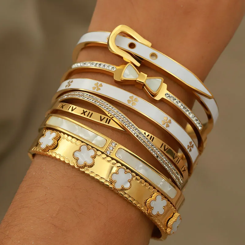 316L Stainless Steel Metal Classic Flower Bangles for Women Fashion Brand Jewelry Delicate Bowknot Bracelets Accessories