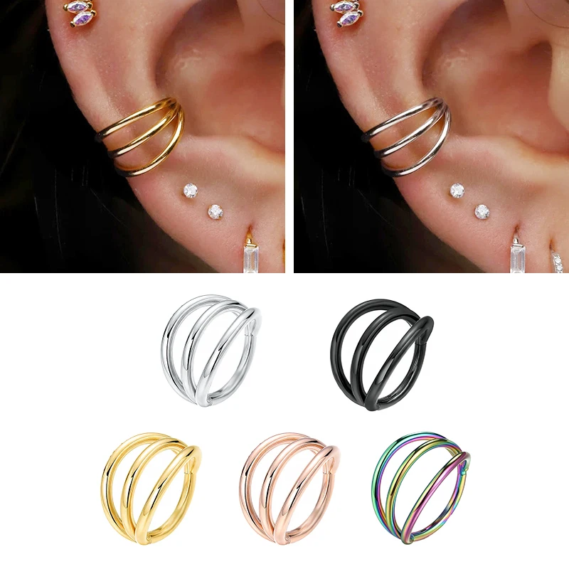 316L Surgical Steel Segment Tragus Helix Cartilage Earring Nose Ring Septum Clicker Conch Three Layers Nostril Piercing Jewelry