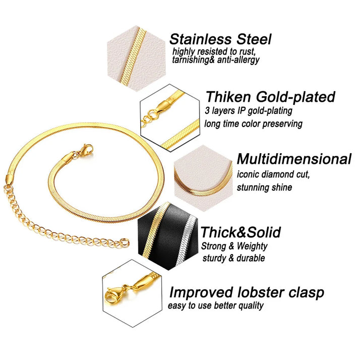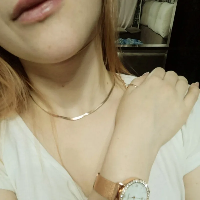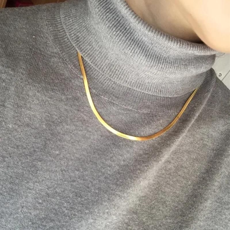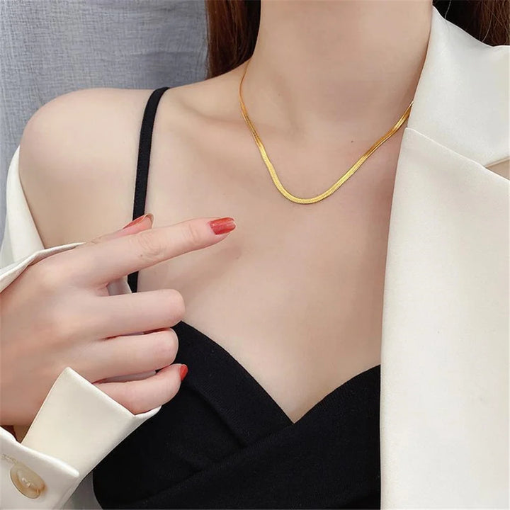 35CM Herringbone Necklace for Women Dainty Gold Color Flat Choker Snake Chain Necklace Thin Gift for Her Dropshipping