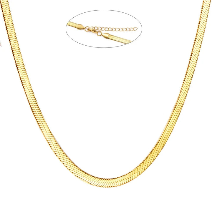35CM Herringbone Necklace for Women Dainty Gold Color Flat Choker Snake Chain Necklace Thin Gift for Her