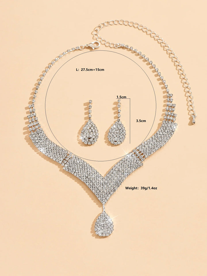 3pcs fashionable rhinestones, water droplets, necklaces, earrings, jewelry sets, women's wedding accessories