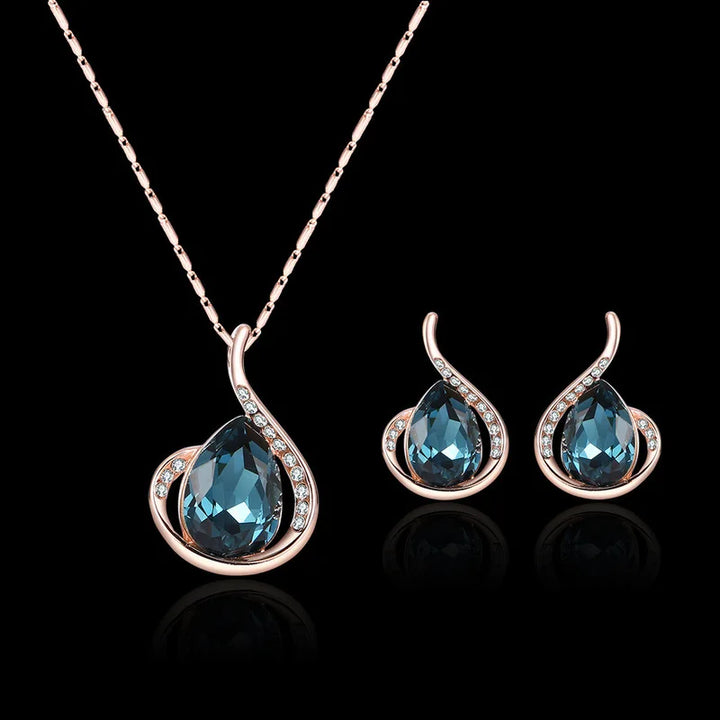 3pcs/set Jewelry Sets Women Elegant Waterdrop Rhinestone Pendant Necklace Hook Earrings Jewelry Set