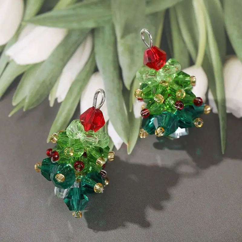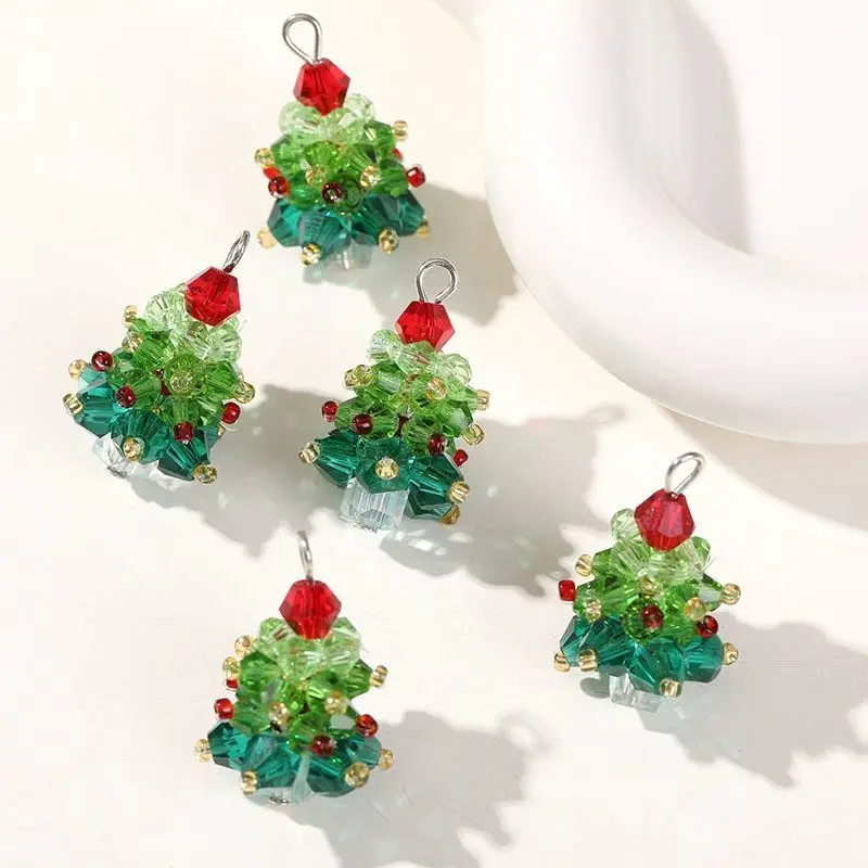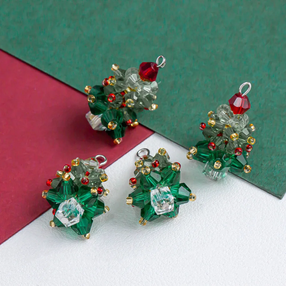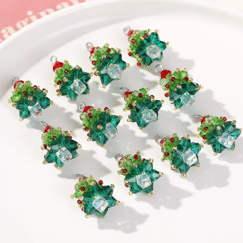 4pcs/Lot Christmas Tree Charms Crystal Glass Pendants For DIY Earrings Necklace Bracelets Jewelry Making Supplies Accessories