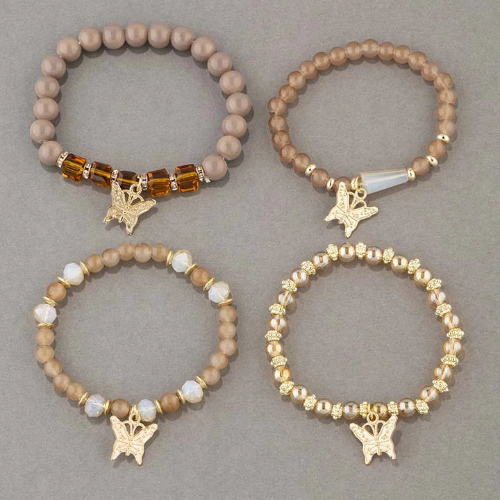 4Pcs Trendy Butterfly Beaded Bracelet Set For Women Pink Acrylic Beads Elastic Chain Bangle Female Bohemian Party Jewelry Gift