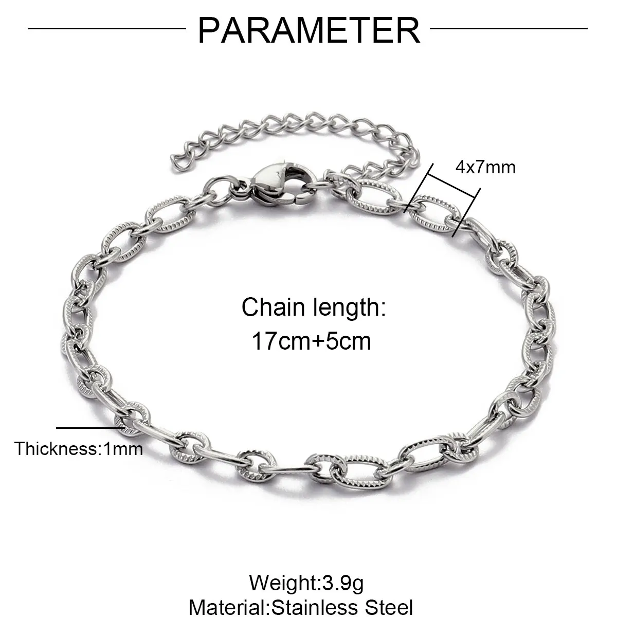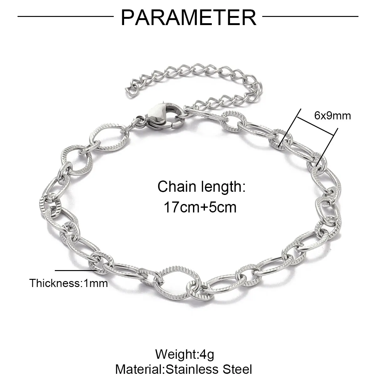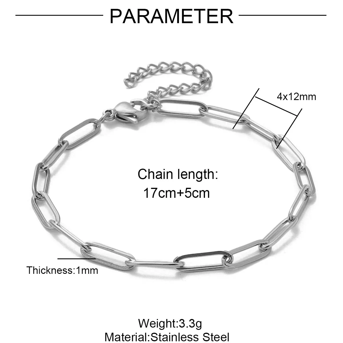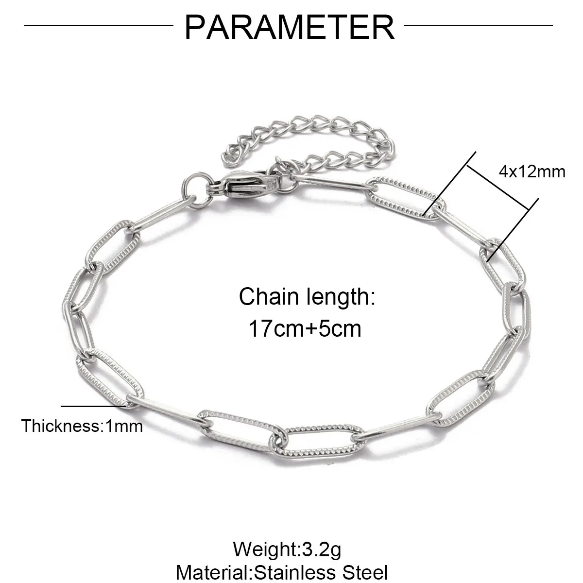 5pcs/Lot 17-22cm Never Fade Stainless Steel Paperclip Cross Link Chain Bracelet Women Handmade DIY Charm Jewelry Making