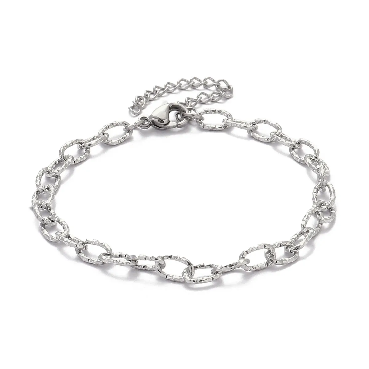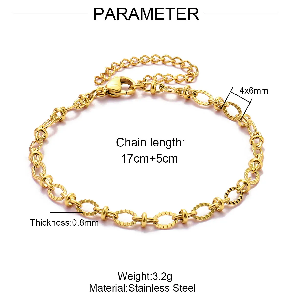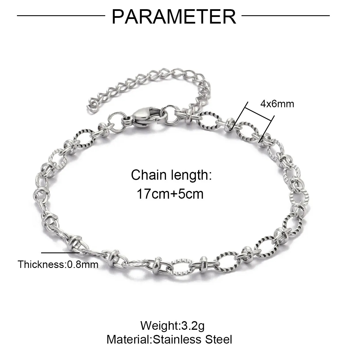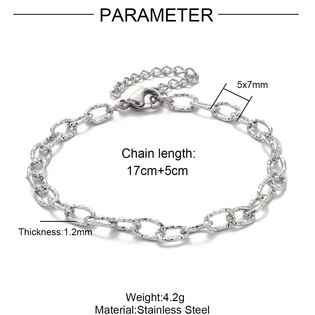 5pcs/Lot 17-22cm Never Fade Stainless Steel Paperclip Cross Link Chain Bracelet Women Handmade DIY Charm Jewelry Making
