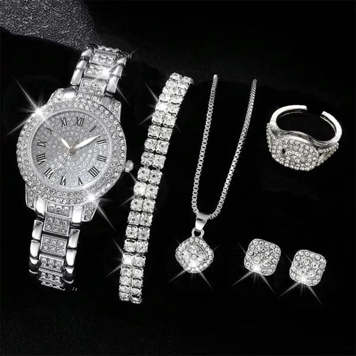 6PCS/SET Silver Women's Watch Business Leisure Element Watch Luxury Dial Quartz Watch Jewelry Set Gift For Her