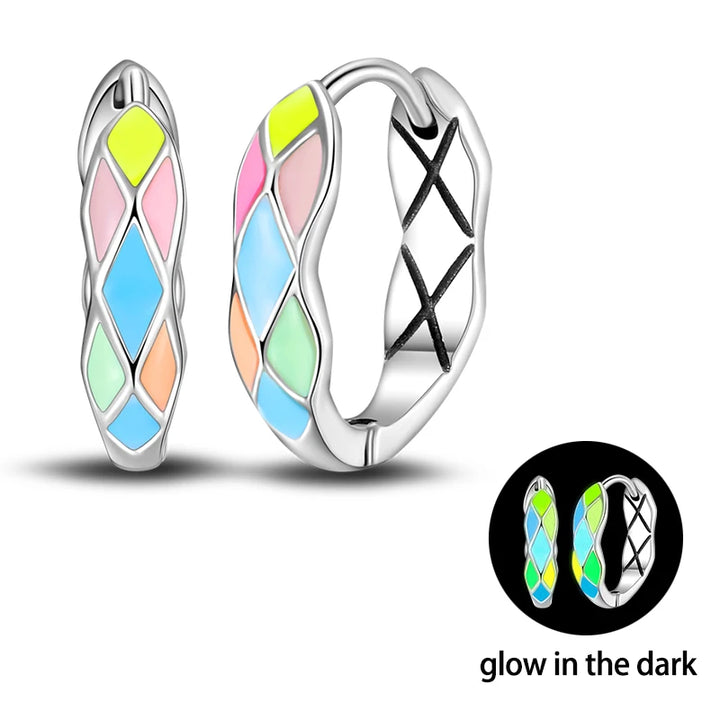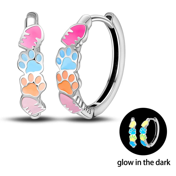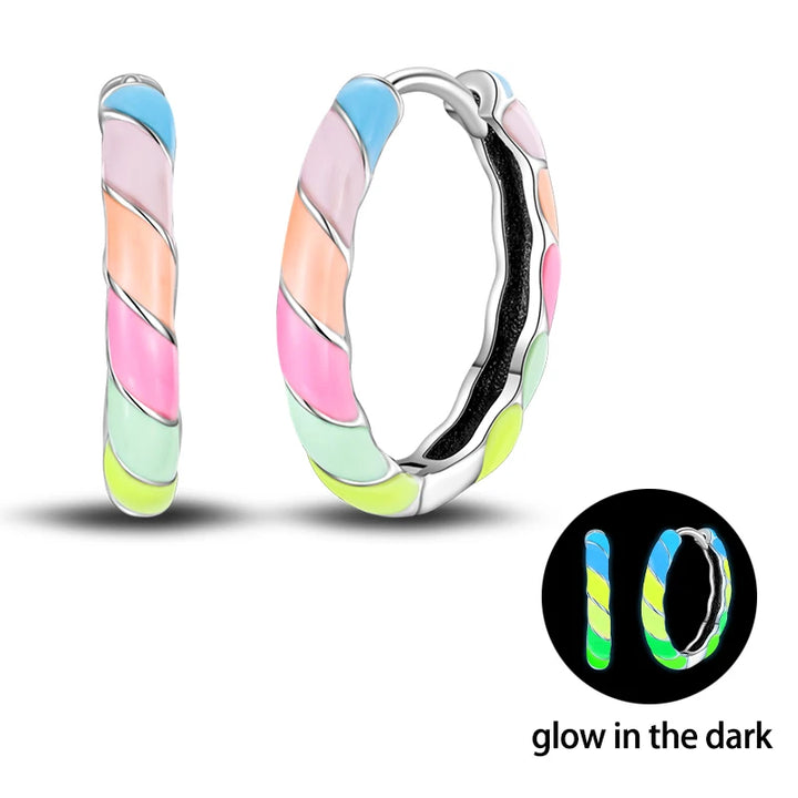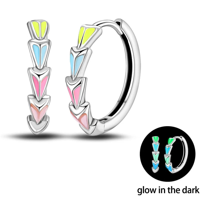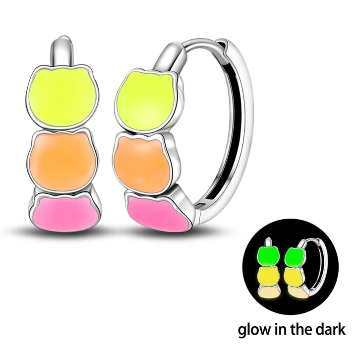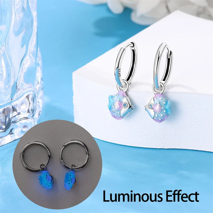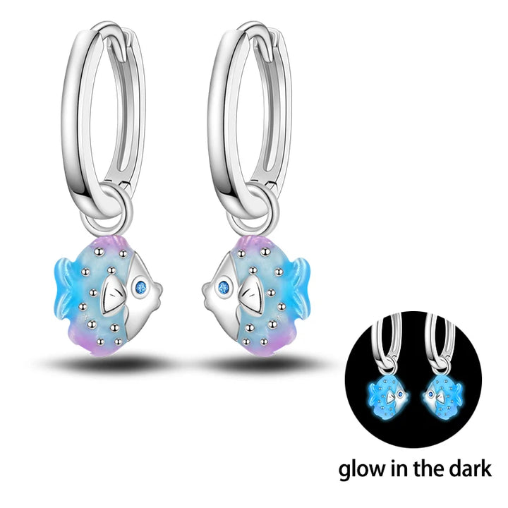 925 Silver Color Glow In The Dark Cute Claw Fish Earrings Circular Rainbow Earrings For Women Fine Birthday Christmas Jewelry