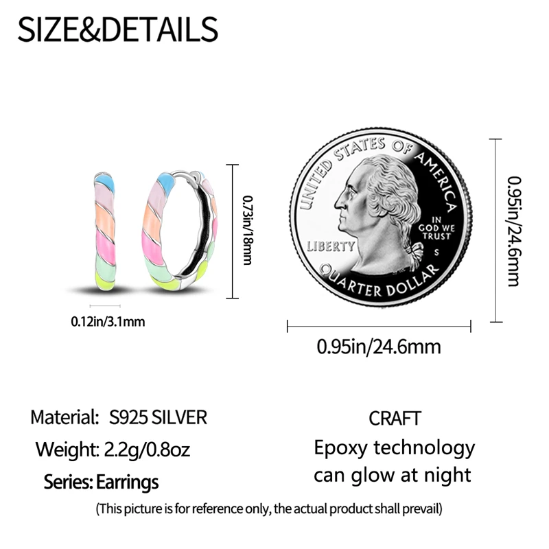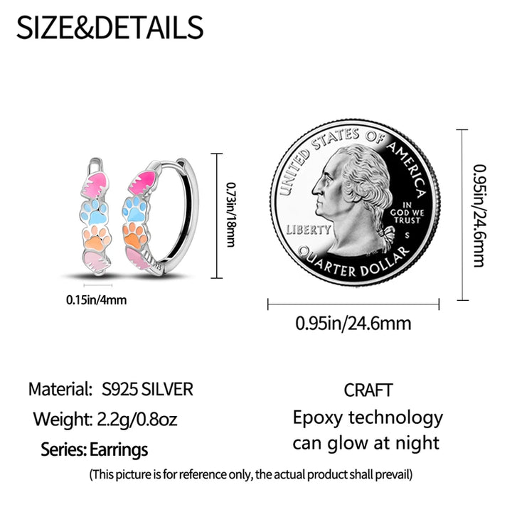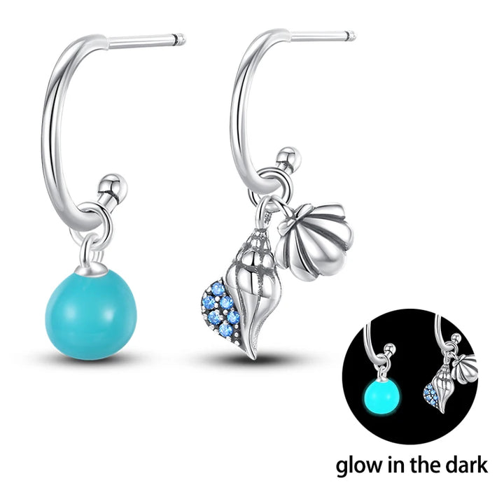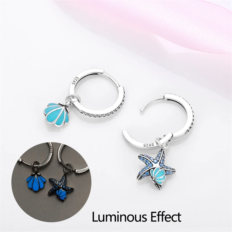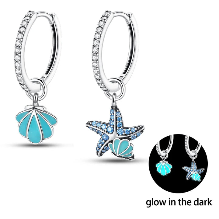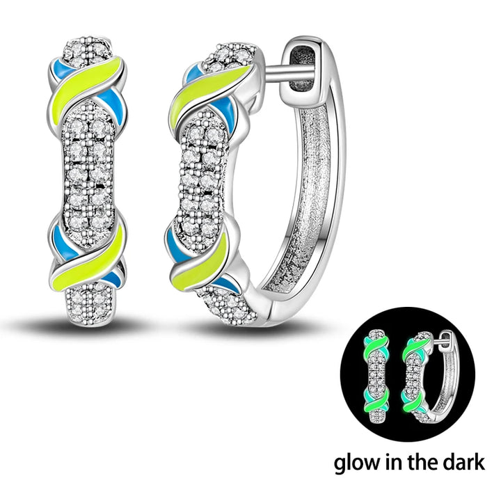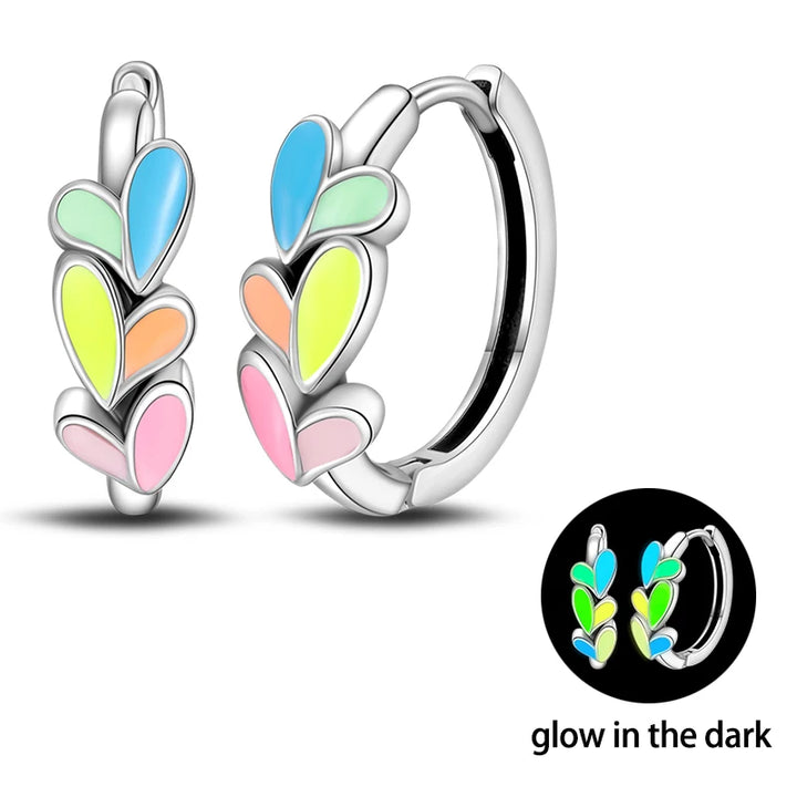 925 Silver Color Glow In The Dark Cute Claw Fish Earrings Circular Rainbow Earrings For Women Fine Birthday Christmas Jewelry