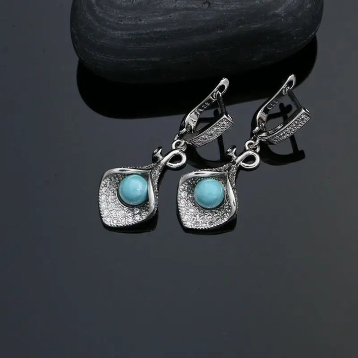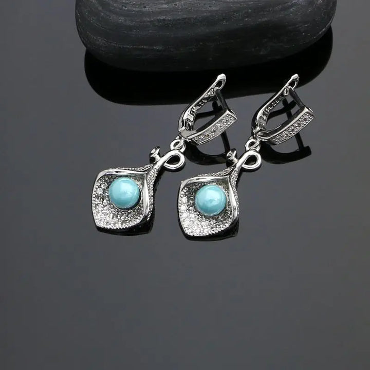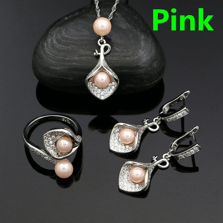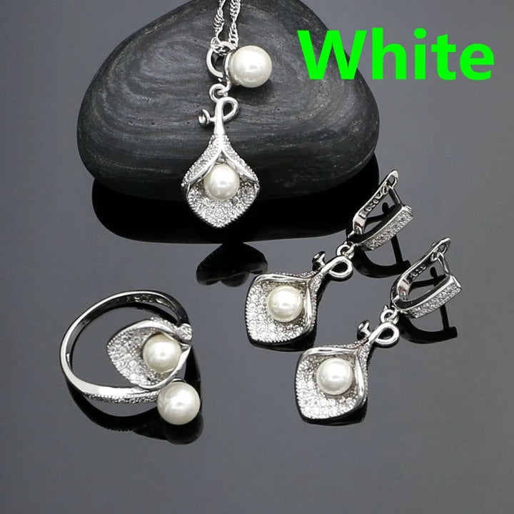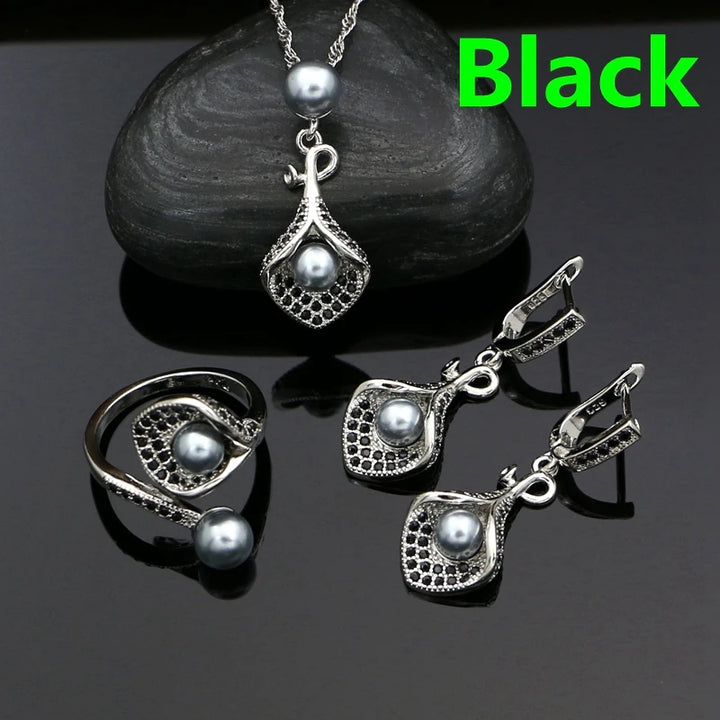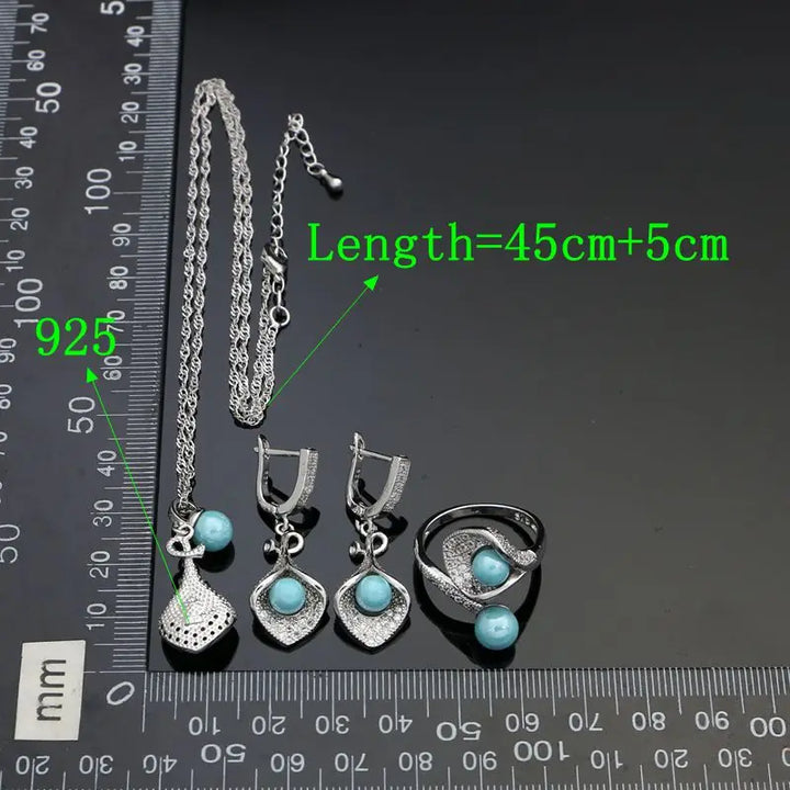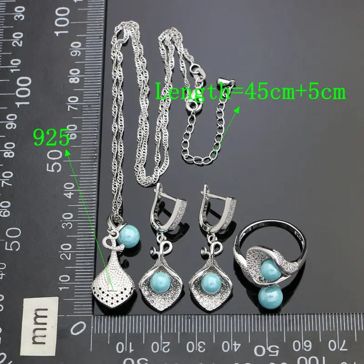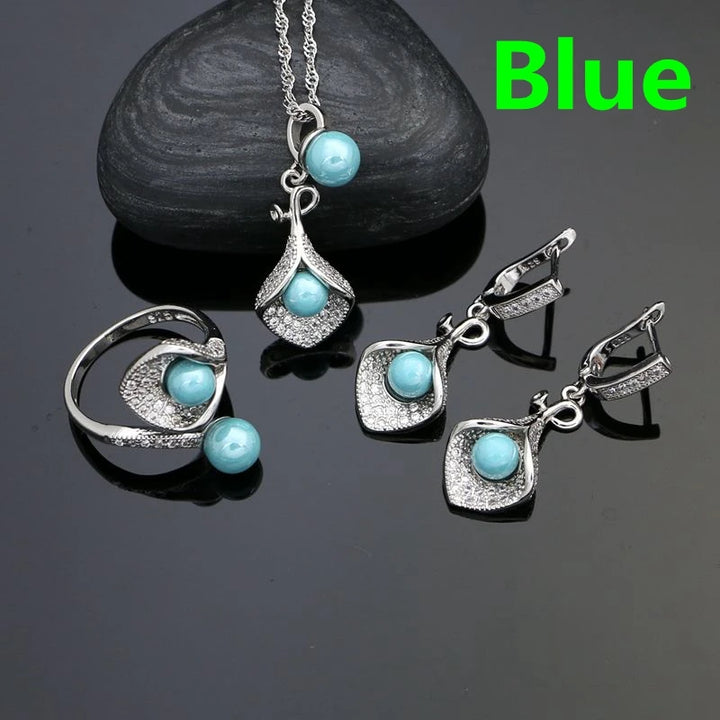 925 Silver Jewelry Sets For Women Party Accessories Blue Pearl Beads White Crystal Earrings Necklace Peandant Ring Set