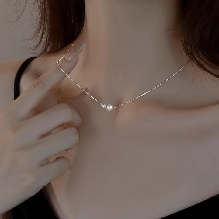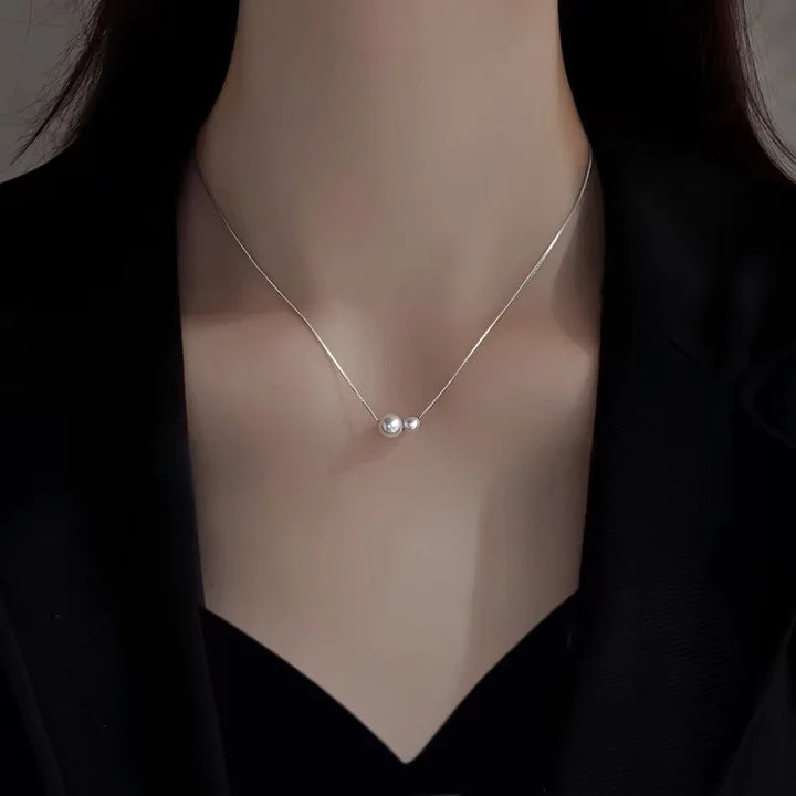 925 Stering Silver Two Pearl Necklace Pendant for Women Exquisite Luxury Jewelry Collarbone Chain Gift Accessories