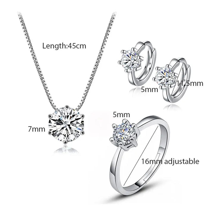925 Sterling Silver Dazzling 6 Claws AAAAA Zirconia Necklace+Earrings+Ring Jewelry Sets For Women Wedding Jewelry