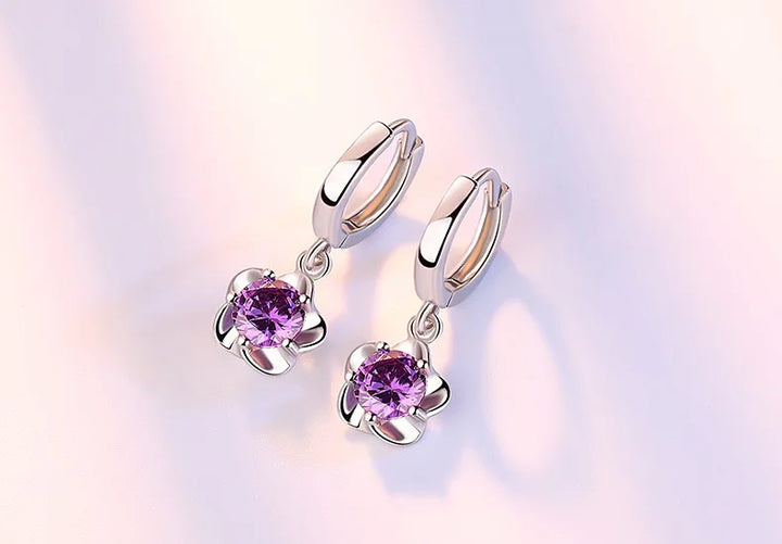 925 Sterling Silver Earrings Jewelry High Quality Retro Simple Pattern Purple White Zircon Earrings Hot Sale