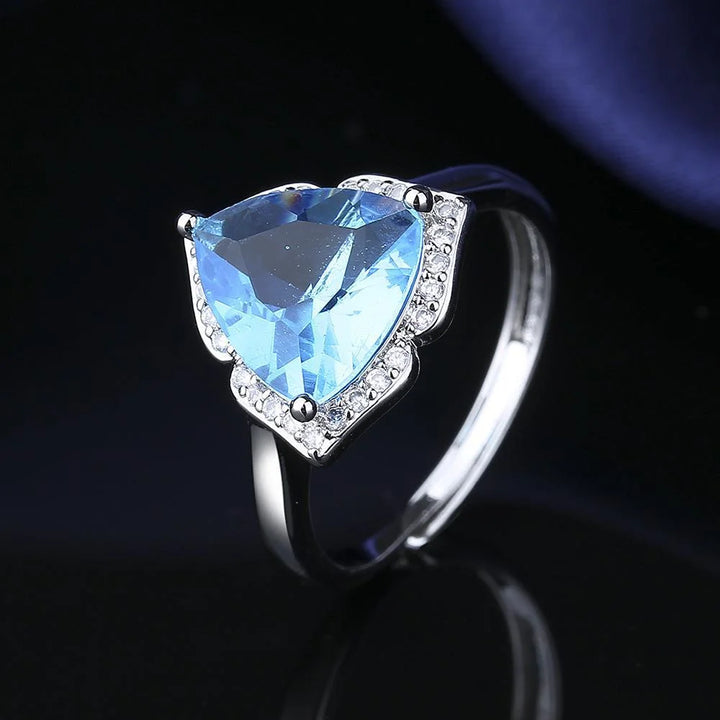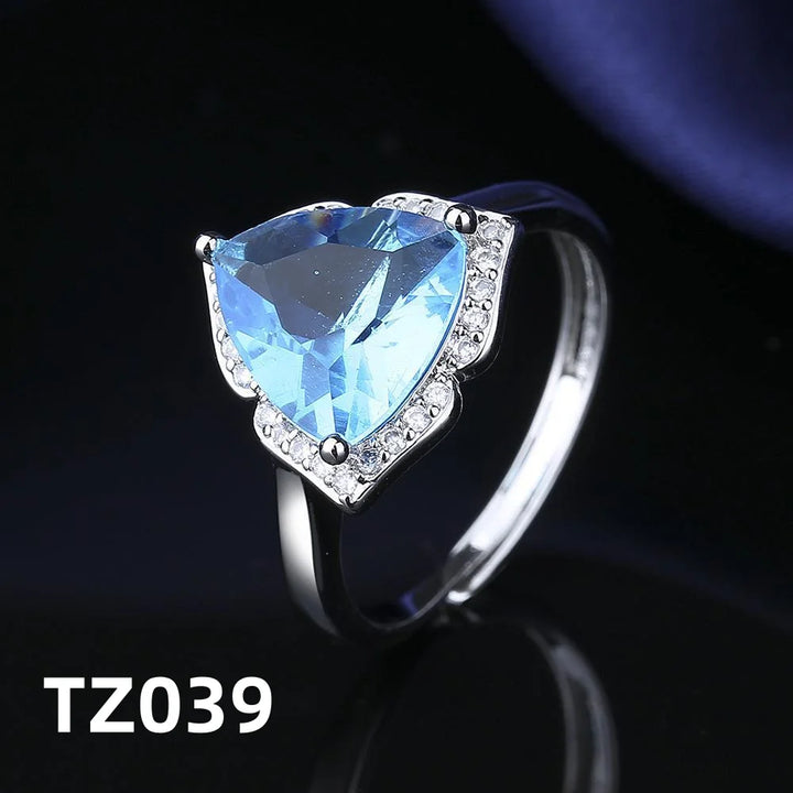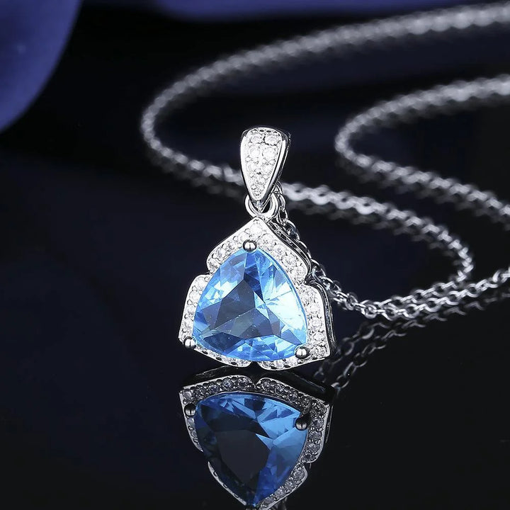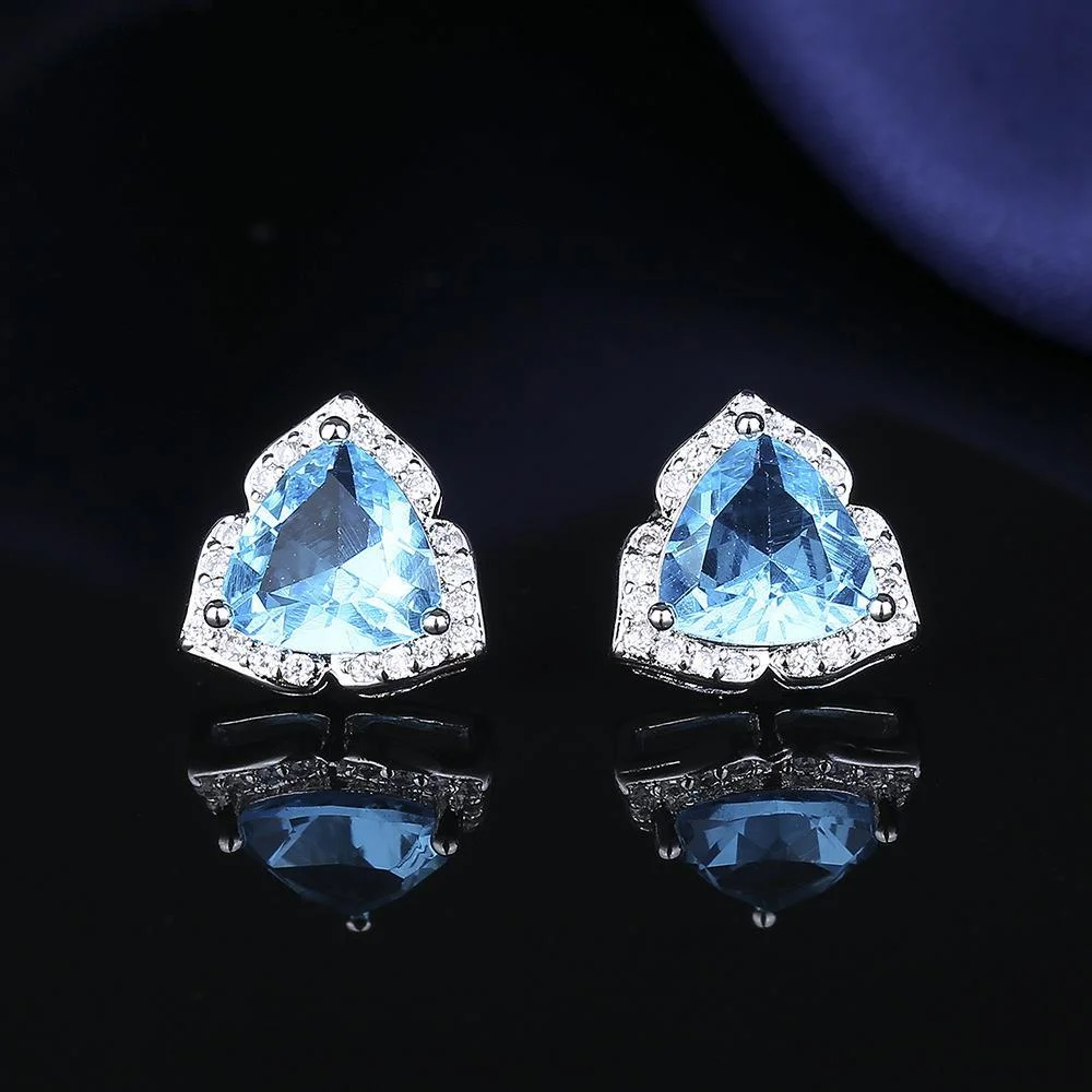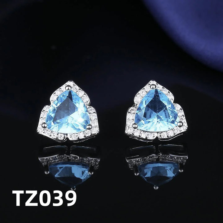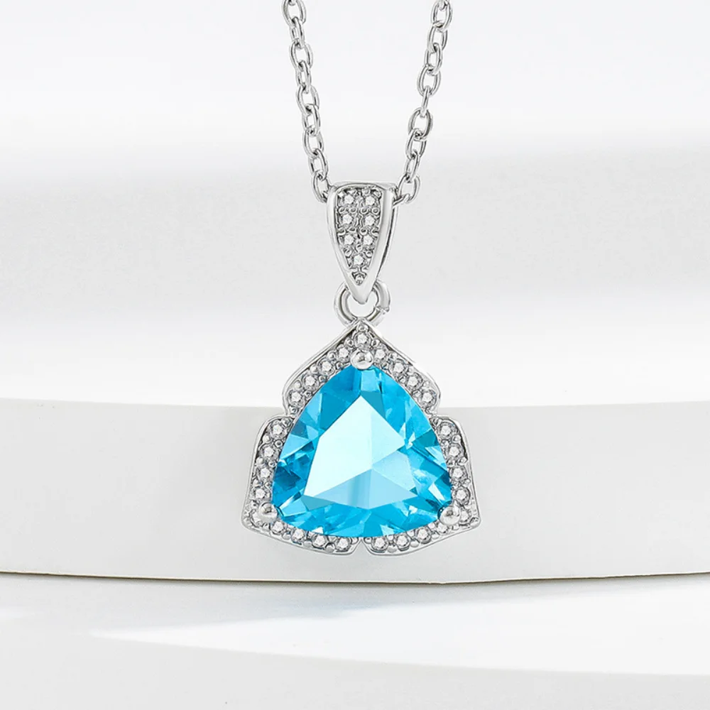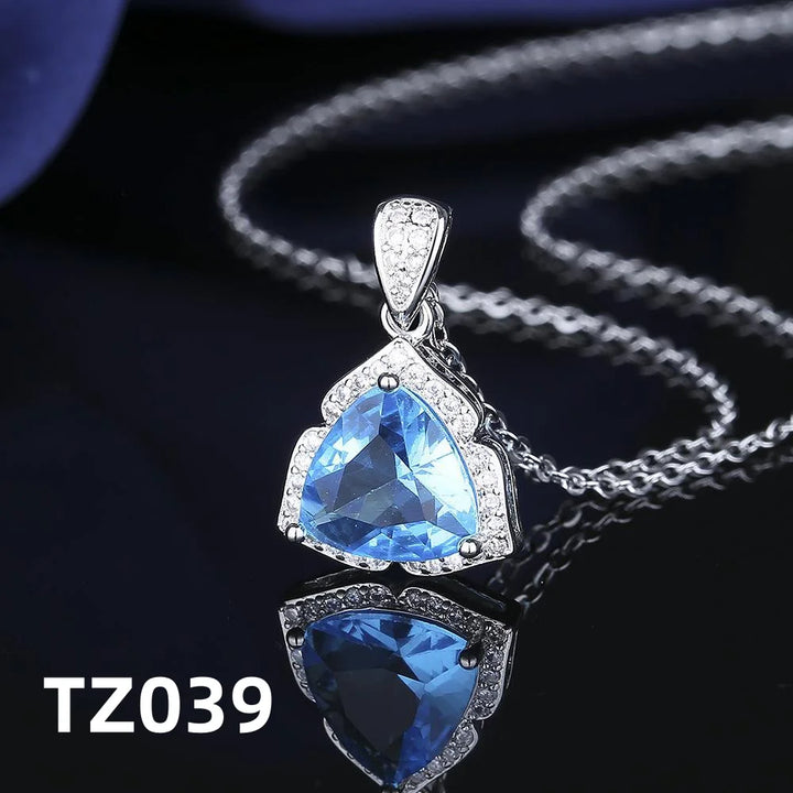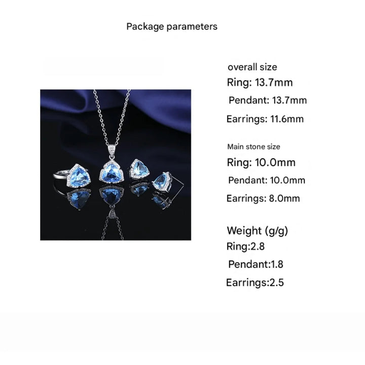 925 Sterling Silver Jewelry Set Shiny Blue Gemstone Zircon Women Necklace Earrings Ring Birthday Party Jewelry Set Gift