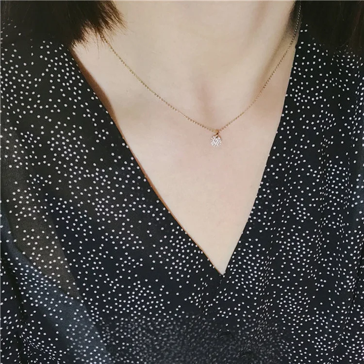 925 sterling silver plated 14K gold necklace light luxury versatile exquisite full small round brand clavicle chain for women