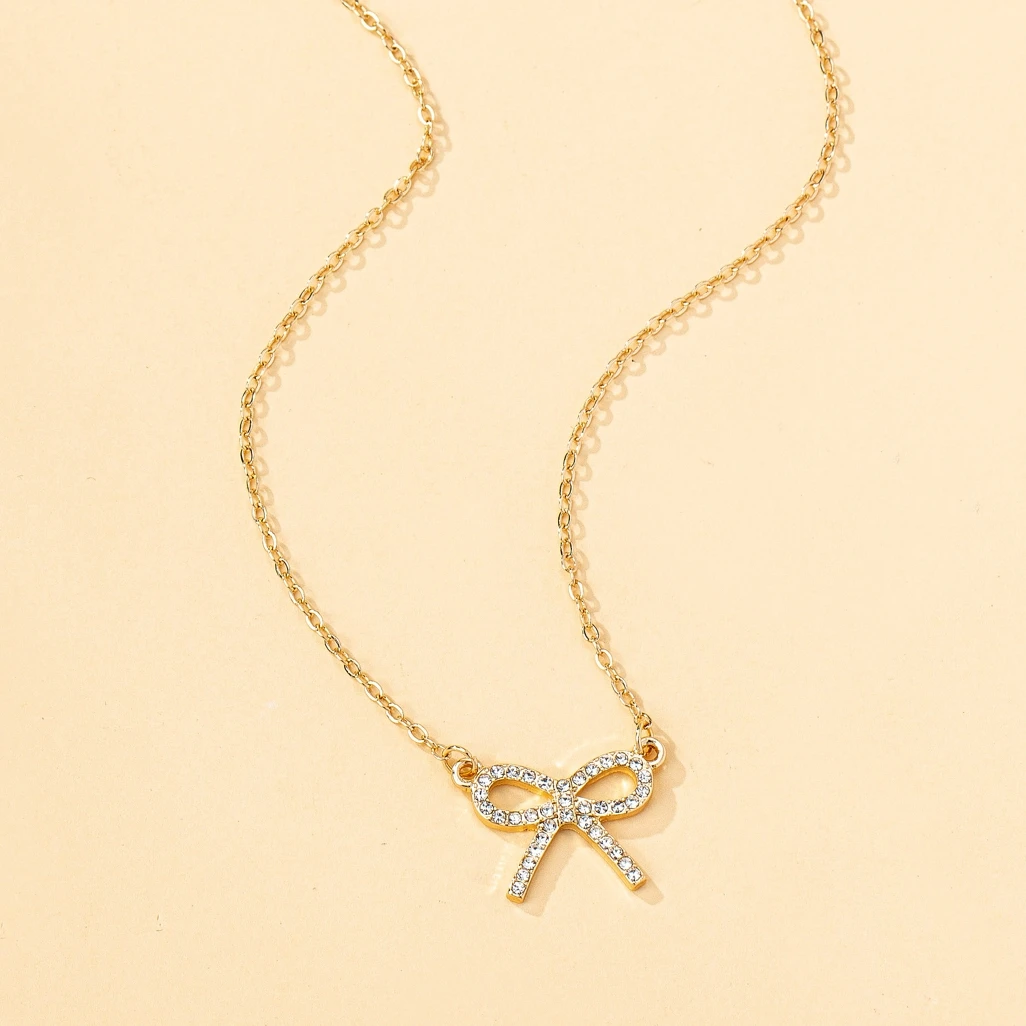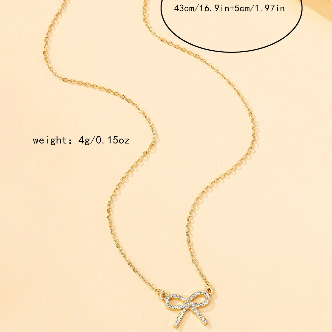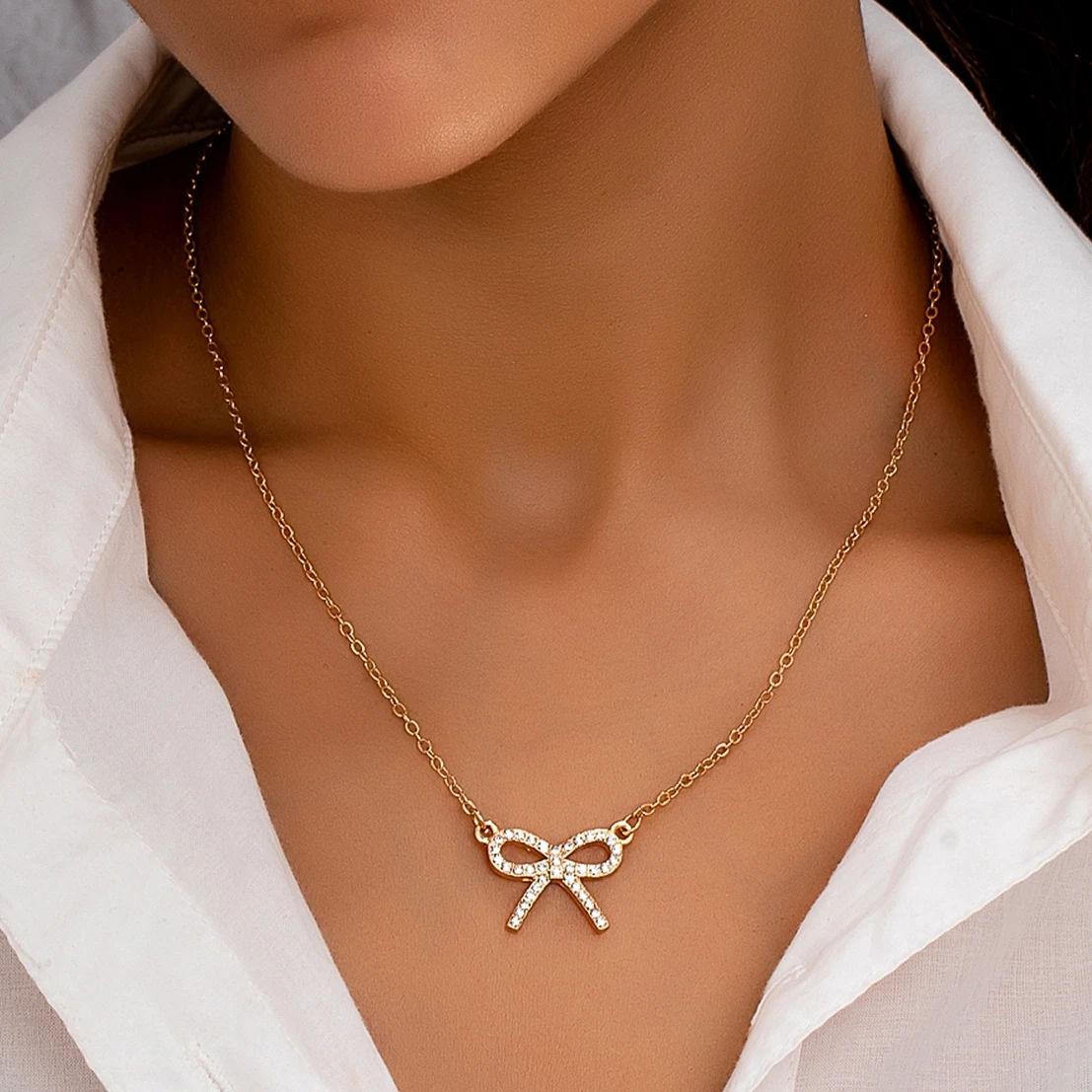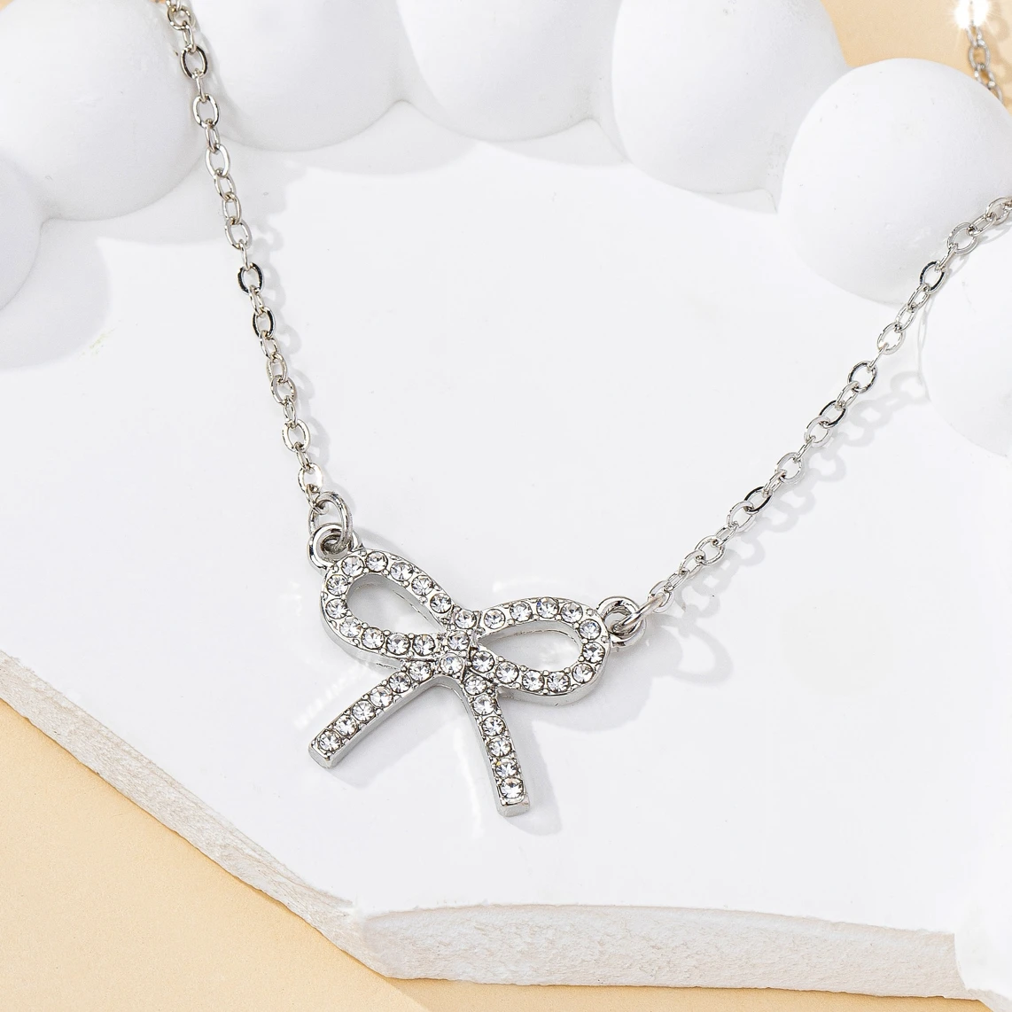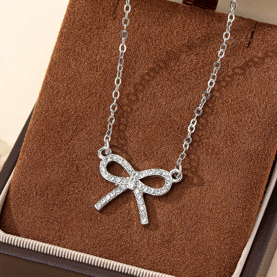 A Women's Necklace with Bow Inlaid with Glass Imitation Diamonds, Shiny and Sweet Women's Necklace, Suitable for Daily Wear and Vacation